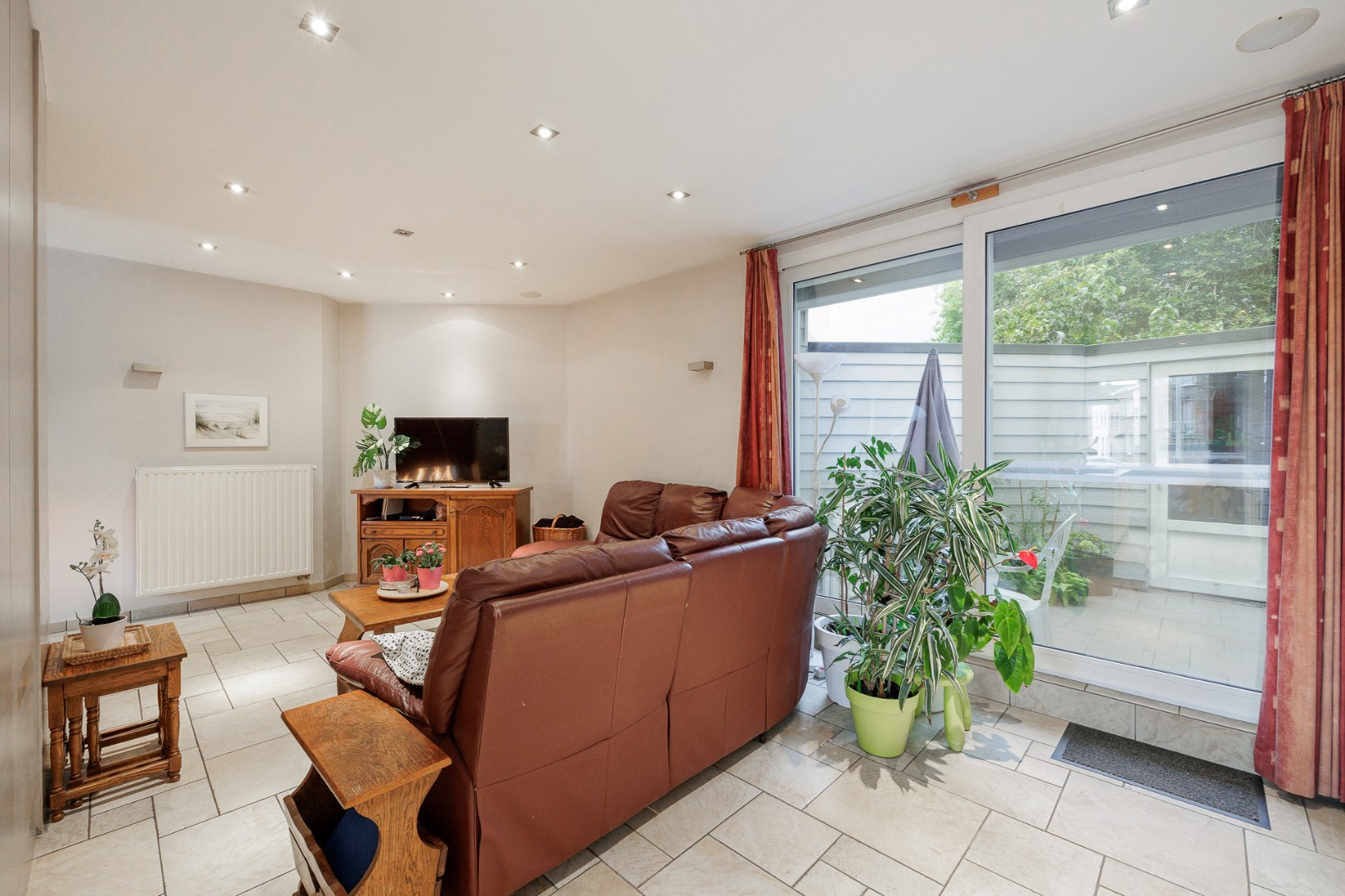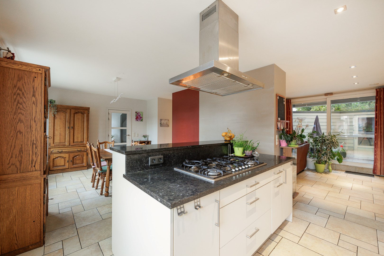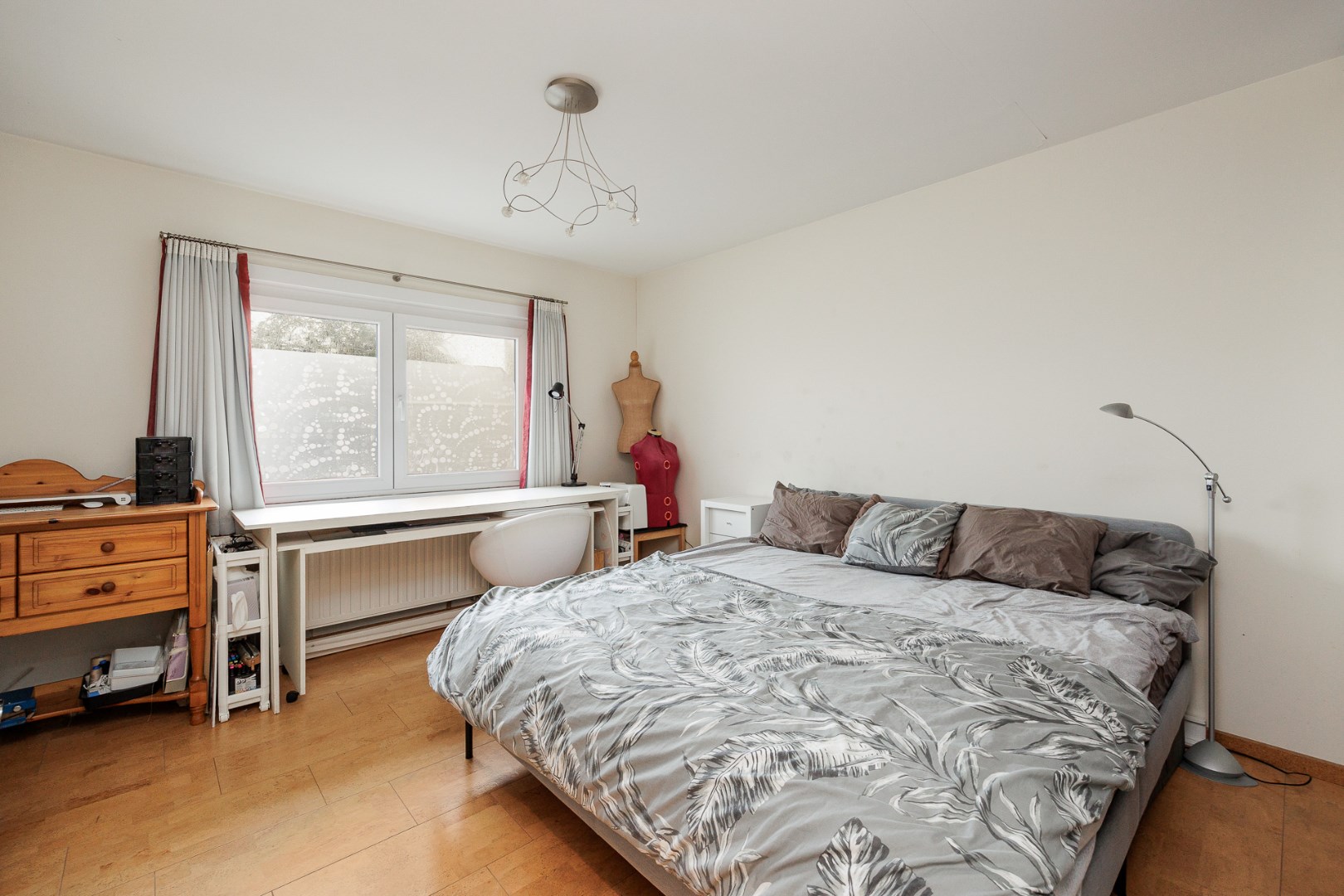 Gelijkvloers verdieping: Via de trap bereikt u de woning en komt u binnen in de inkomhal met vestiaire. Hier is er een apart gastentoilet voorzien en bevindt er zich de doorgang naar de -1 verdieping. De woonkamer (23m²) is gescheiden van de eetkamer (26m²) en open keuken door een gezellige open haard (gas). De keuken is volledig geïnstalleerd met een gaskookplaat (6-pits), een dampkap, een dubbele spoelbak, een geïntegreerde vaatwasser, een oven, een microgolfoven, een koelkast en een diepvriezer. Aanpalend is er de mooi onderhouden koer (13m²) met tuinhuis.