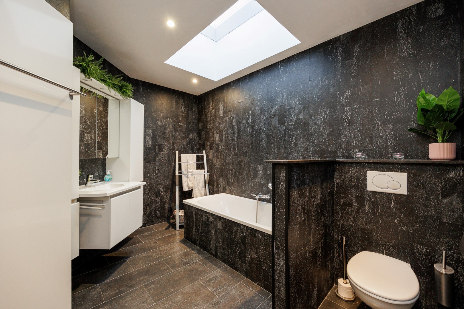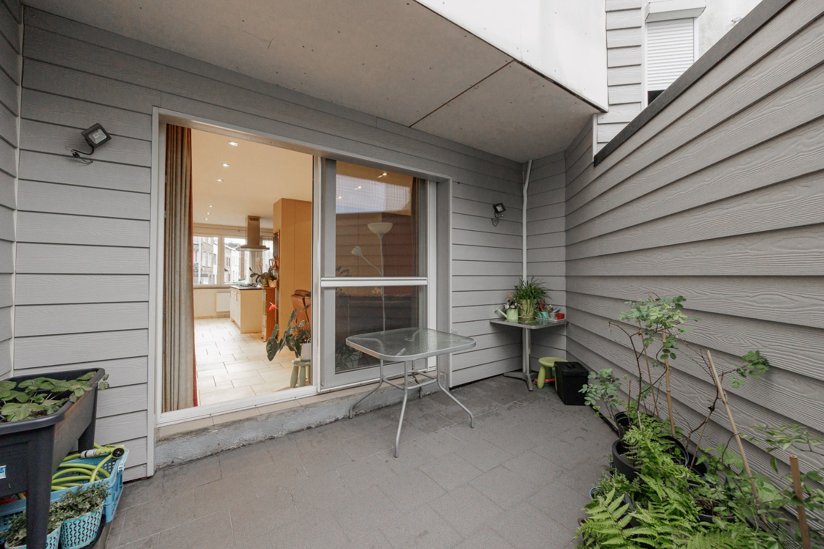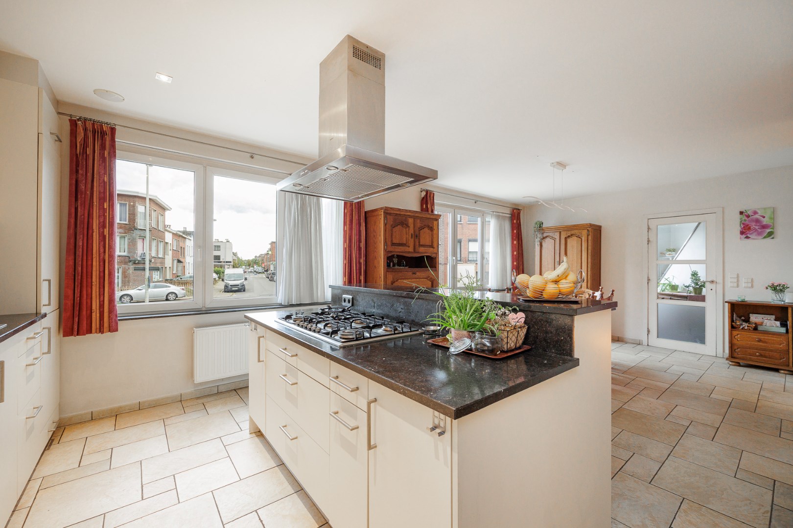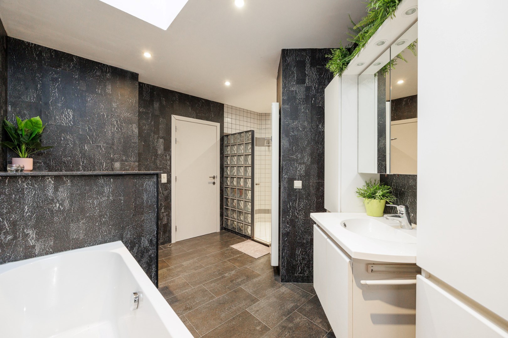 Gelijkvloers verdieping: Via de trap bereikt u de woning en komt u binnen in de inkomhal met vestiaire. Hier is er een apart gastentoilet voorzien en bevindt er zich de doorgang naar de -1 verdieping. De woonkamer (23m²) is gescheiden van de eetkamer (26m²) en open keuken door een gezellige open haard (gas). De keuken is volledig geïnstalleerd met een gaskookplaat (6-pits), een dampkap, een dubbele spoelbak, een geïntegreerde vaatwasser, een oven, een microgolfoven, een koelkast en een diepvriezer. Aanpalend is er de mooi onderhouden koer (13m²) met tuinhuis.