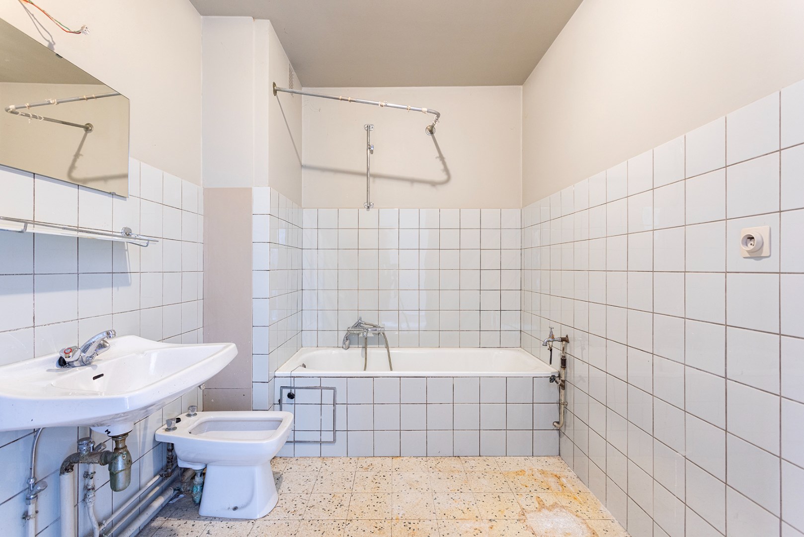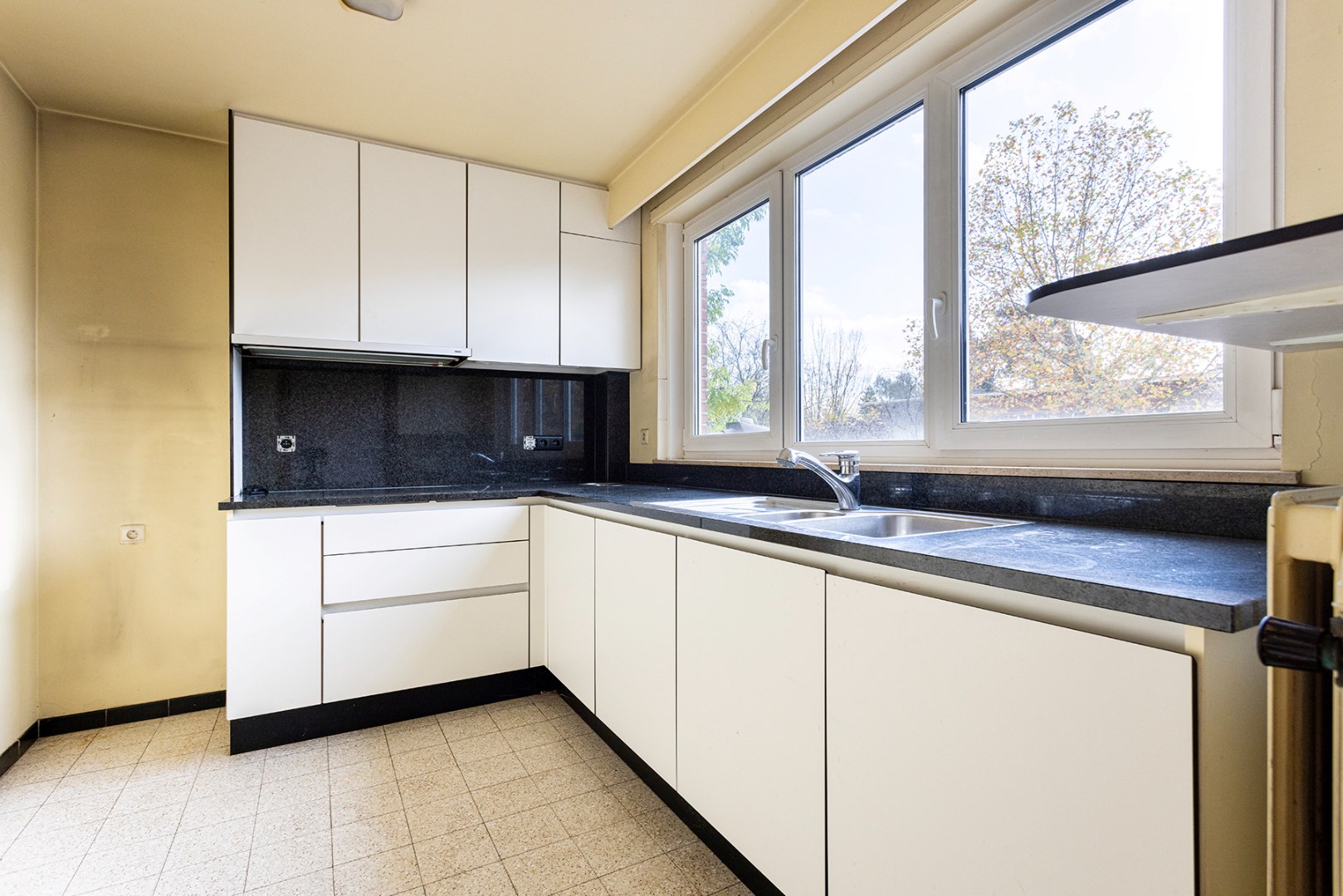 Bent u op zoek naar een te renoveren appartement in een klein gebouw? En dit met 3 slaapkamers, ruim terras en garagebox? Dan stellen we graag volgende opportuniteit op de 1ste verdieping (zonder lift) aan u voor!