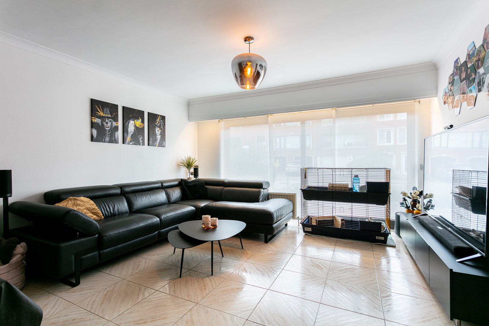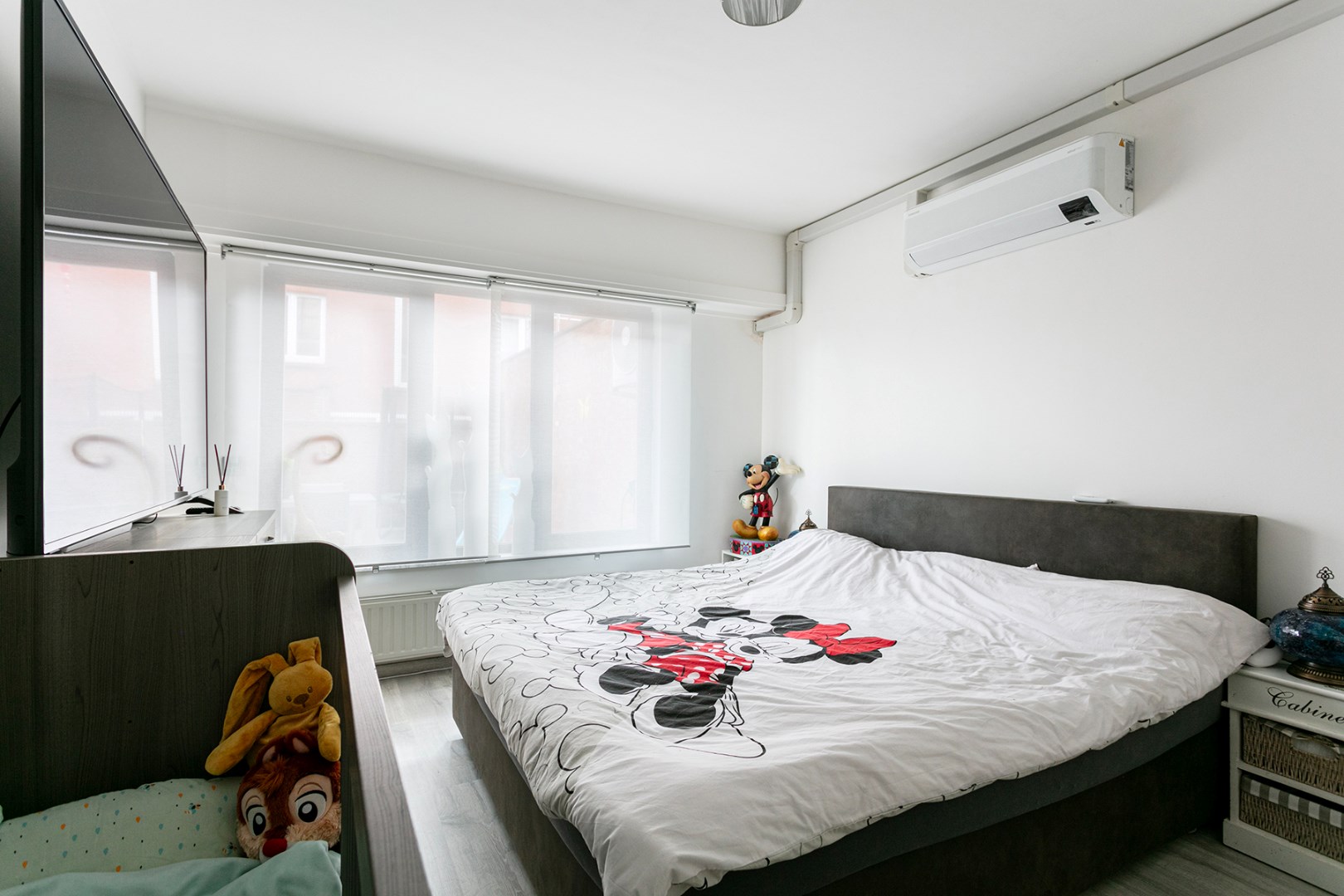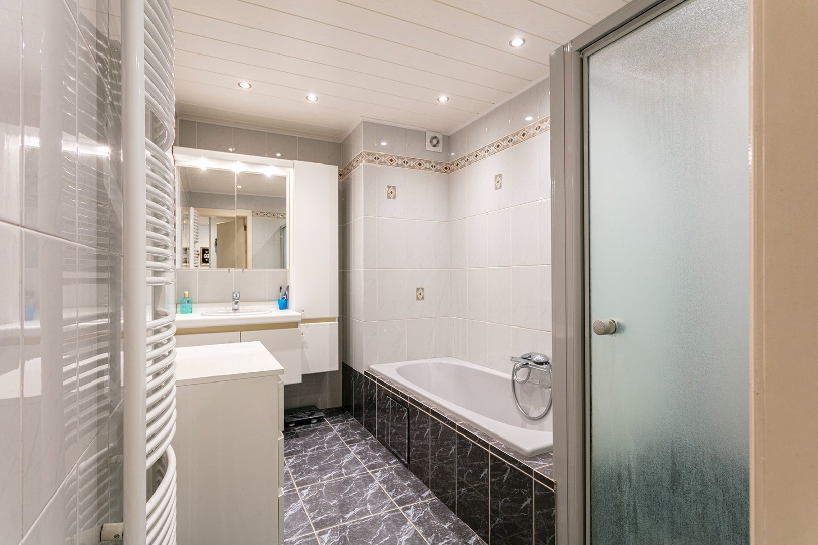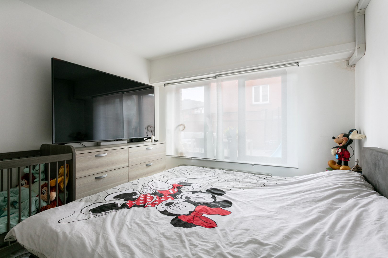 U komt binnen in de centraal gelegen inkomhal met apart toilet met handenwasser. Vanuit de inkomhal betreedt u de lichtrijke leefruimte met airco en aanpalend de volledig geïnstalleerde keuken. De keuken omvat: een dampkap, een kookplaat (Keramisch), een koelkast, een oven en een vaatwasser. Centraal is er nog de badkamer met ligbad, douche, handdoekradiator en een enkel lavabomeubel. Overigens zijn er nog drie slaapkamers. Deze beschikken over een airco en elektrische rolluiken met timer. Tot slot is er nog een zonovergoten, omheinde tuin en een ondergrondse garagebox dewelke verplicht is aan te kopen voor € 25.000.