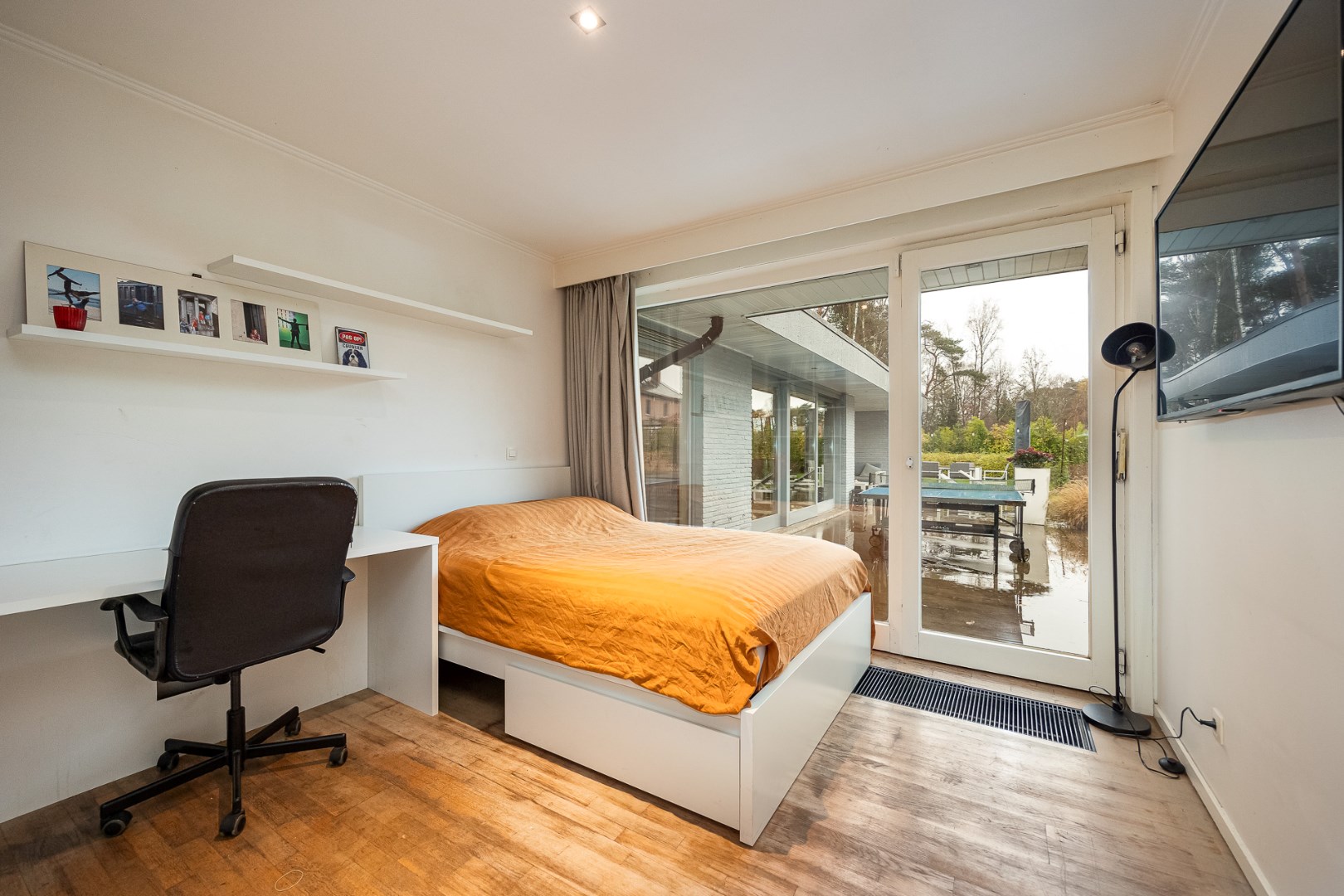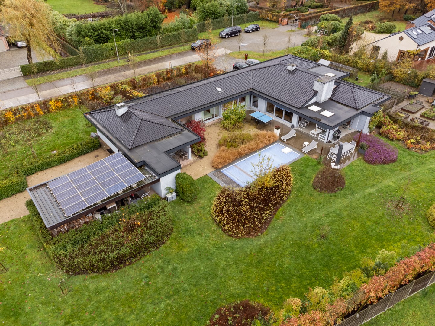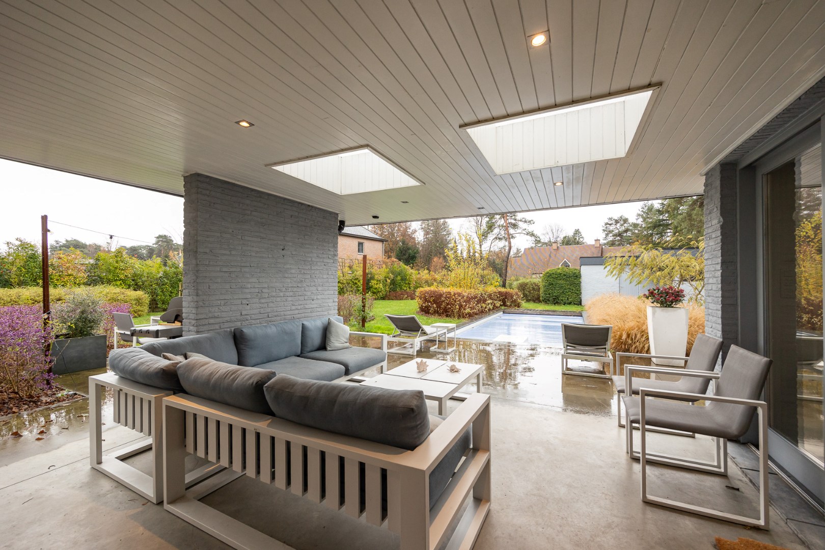 Een werkelijk uitzónderlijke troef is dat niet alleen de keuken en de leefruimte uitgeven op het zwembad maar ook elke individuele slaapkamer, en dit dankzij de C-vorm van de villa: deze indeling zorgt voor een ware oase van rust, ontspanning met als hart het aangelegde zwembad, dat is aangesloten op een warmtepomp en 20 zonnepanelen – perfect voor de warme zomerdagen! Hoewel de ligging aan een cul-de-sac in een gesloten villawijk voor absolute privacy zorgt, bent u tevens nooit ver weg: Op amper 300m ligt de Bredabaan, die Antwerpen met Nederland verbindt – ook via bus – en op minder dan 8 minuten rijden ligt de E19.