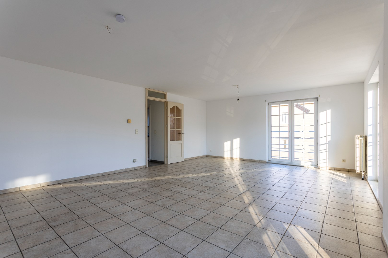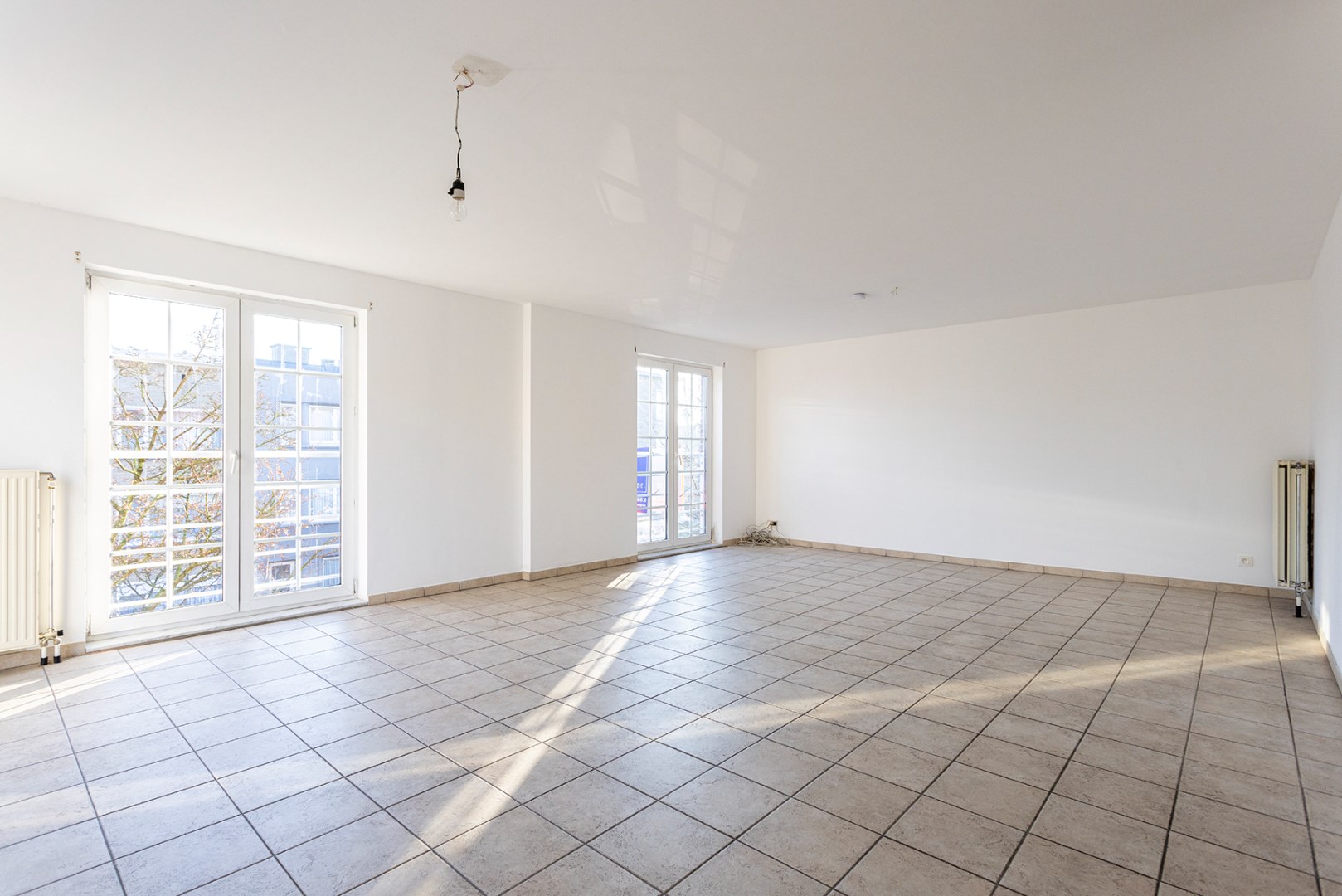 U betreedt het appartement op de tweede verdieping (zonder lift) via de centrale inkomhal die doorgang geeft aan alle ruimtes. Direct vindt u de twee slaapkamers (12m² & 8,5m²) met aanpalend een apart gastentoilet. Als u doorloopt vindt u aan de linkerzijde de vernieuwde keuken (7m²) die voorzien is van een kookvuur, dampkap en enkele spoelbak. Aan de rechterzijde bevindt zich de badkamer (7,5m²) met lavabo, ligbad met douchefunctie en zijn er aansluitingen voor een wasmachine en/of droogkast. Vooraan is er de ruime lichtrijke woonkamer van 37m² met veel raampartijen.