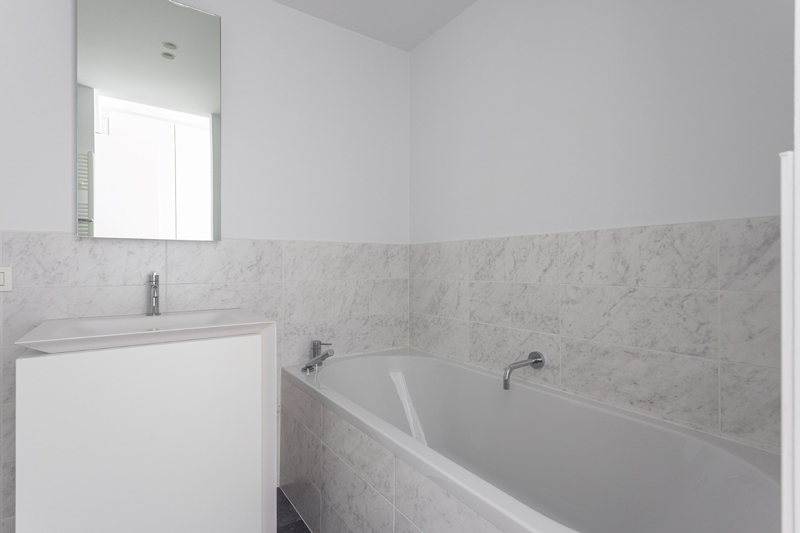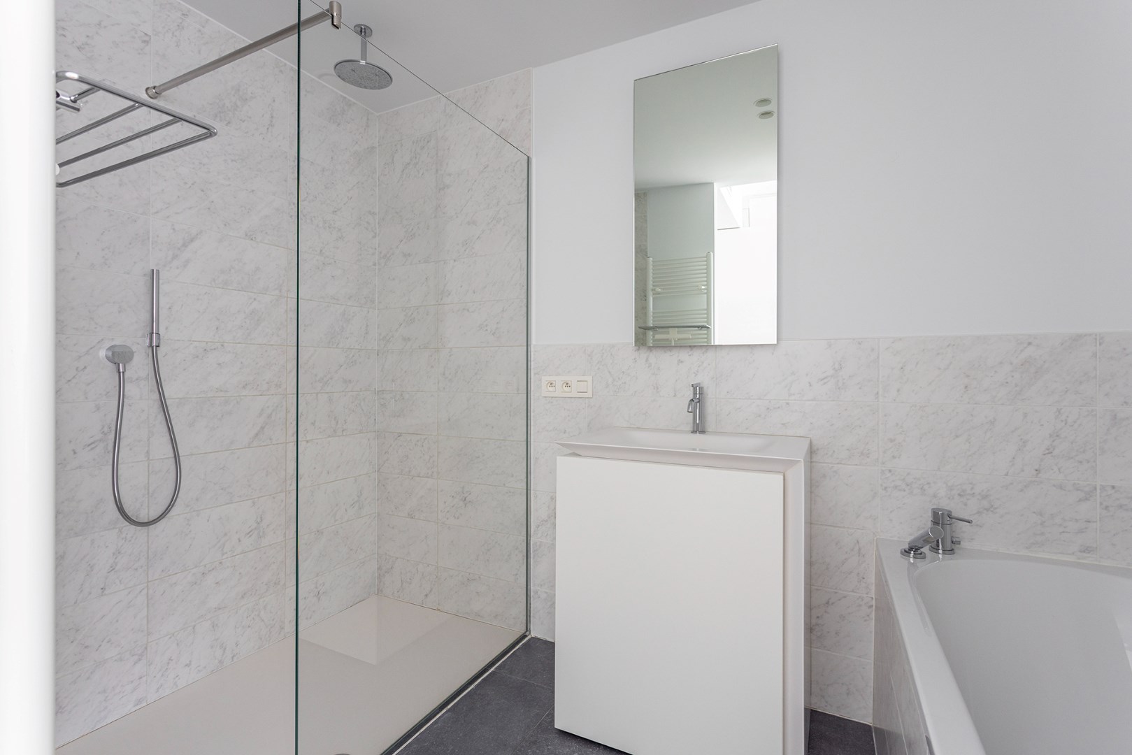 De slaapkamer is voorzien van een wand met inbouwkasten waarin een ruimte is voorzien om een tv te installeren. Ensuite is er een badkamer in natuursteen met handdoekradiator, luxe ligbad, ruime inloopdouche en enkel lavabomeubel, alle met inbouwkraan.