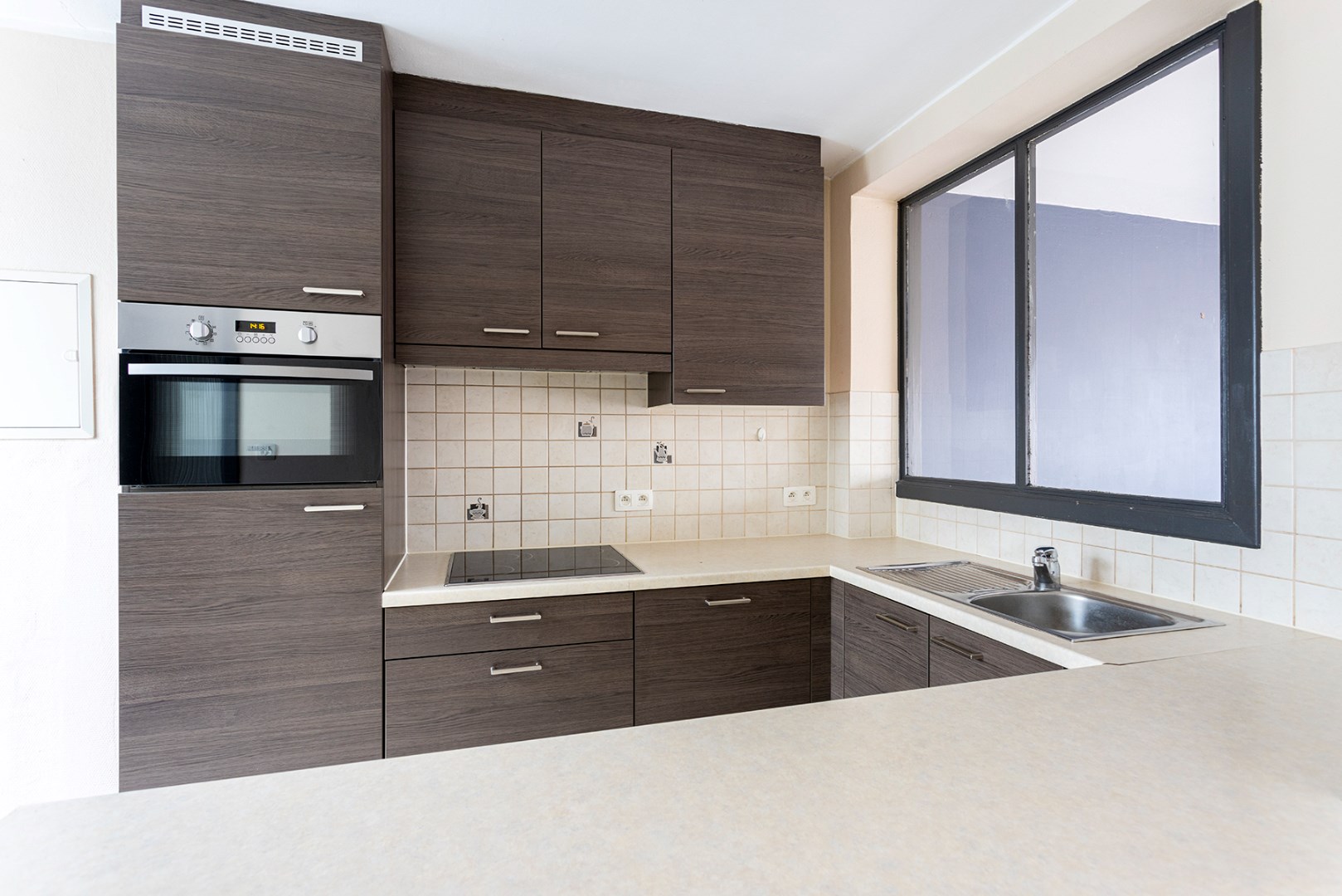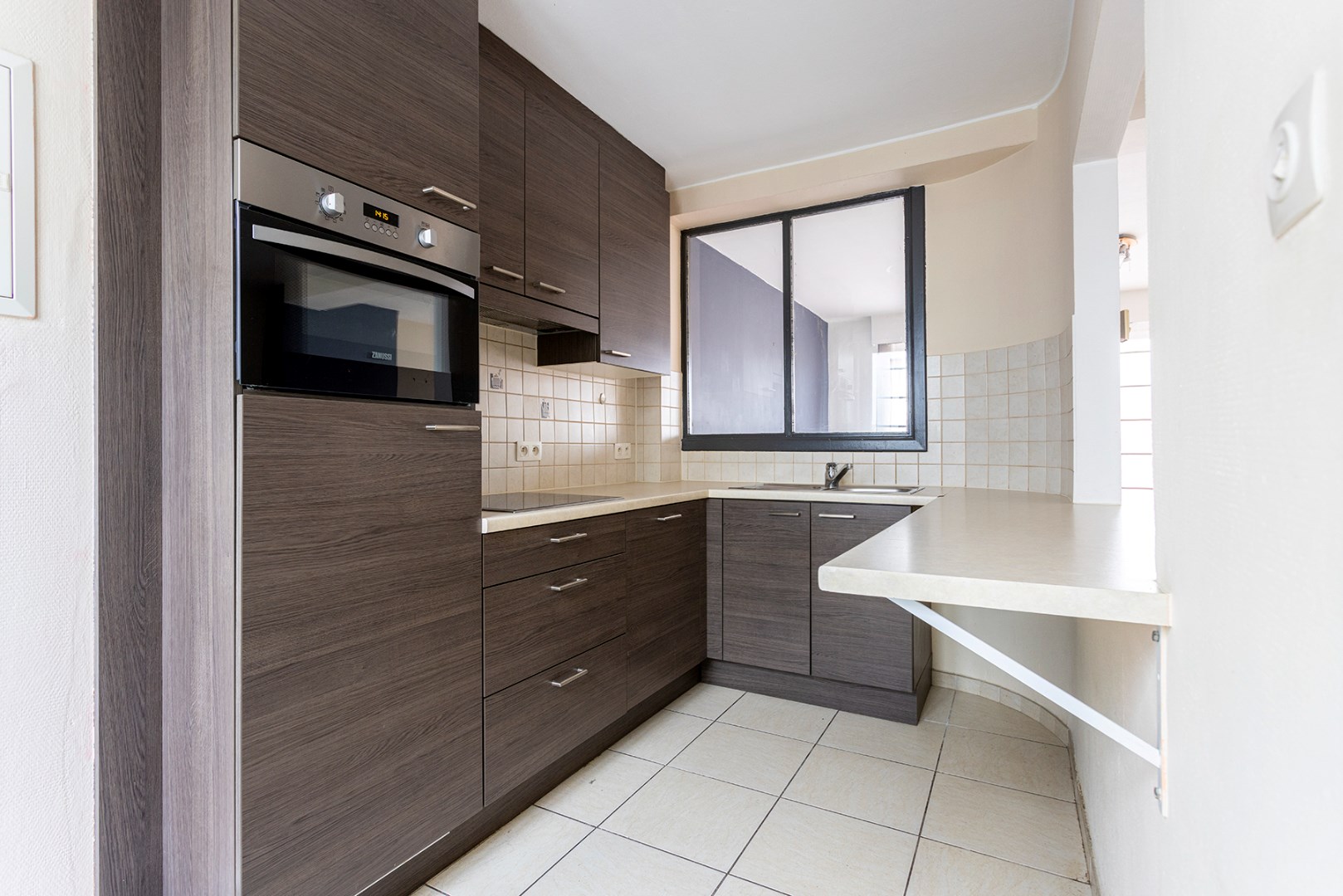 U betreedt het appartement via de centraal gelegen inkomhal, die vooraan toegang geeft tot de lichtrijke woonkamer met halfopen keuken. De keuken is volledig ingericht en onder andere voorzien van een koelkast met vriesvak, elektrische kookplaat en vaatwasser.