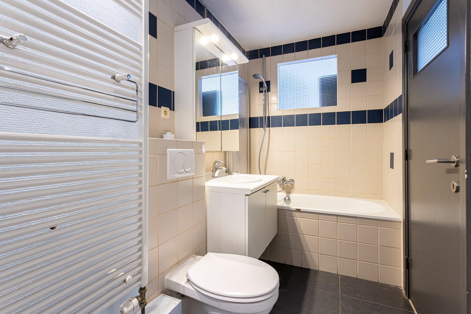 Achteraan het appartement vindt u de twee slaapkamers en de badkamer met bad, lavabomeubel en toilet.