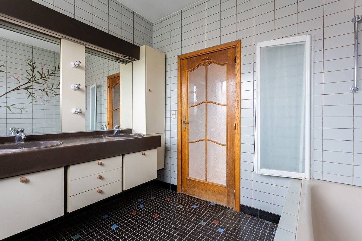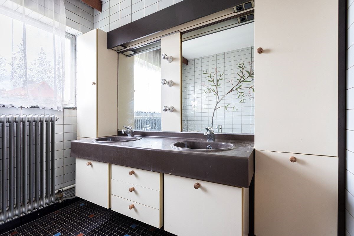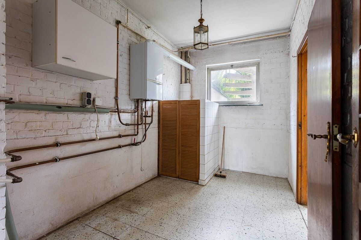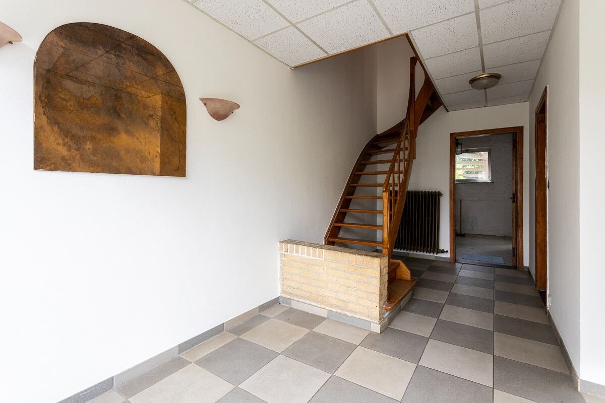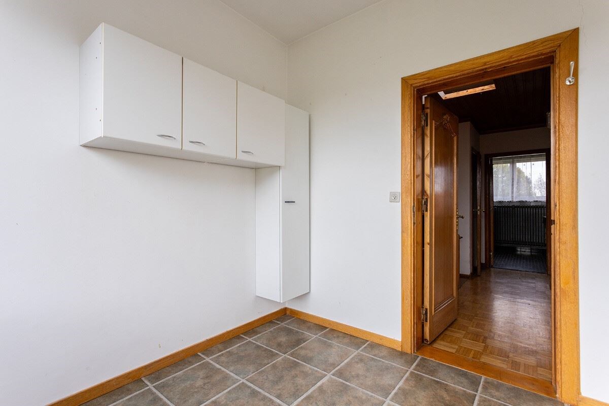 - GLV: de ruime inkomhal heeft toegang tot de inpandige garage en de wasplaats met toilet. De achterzijde van de garage werd omgebouwd tot hobbyruimte met toegang tot de tuin.