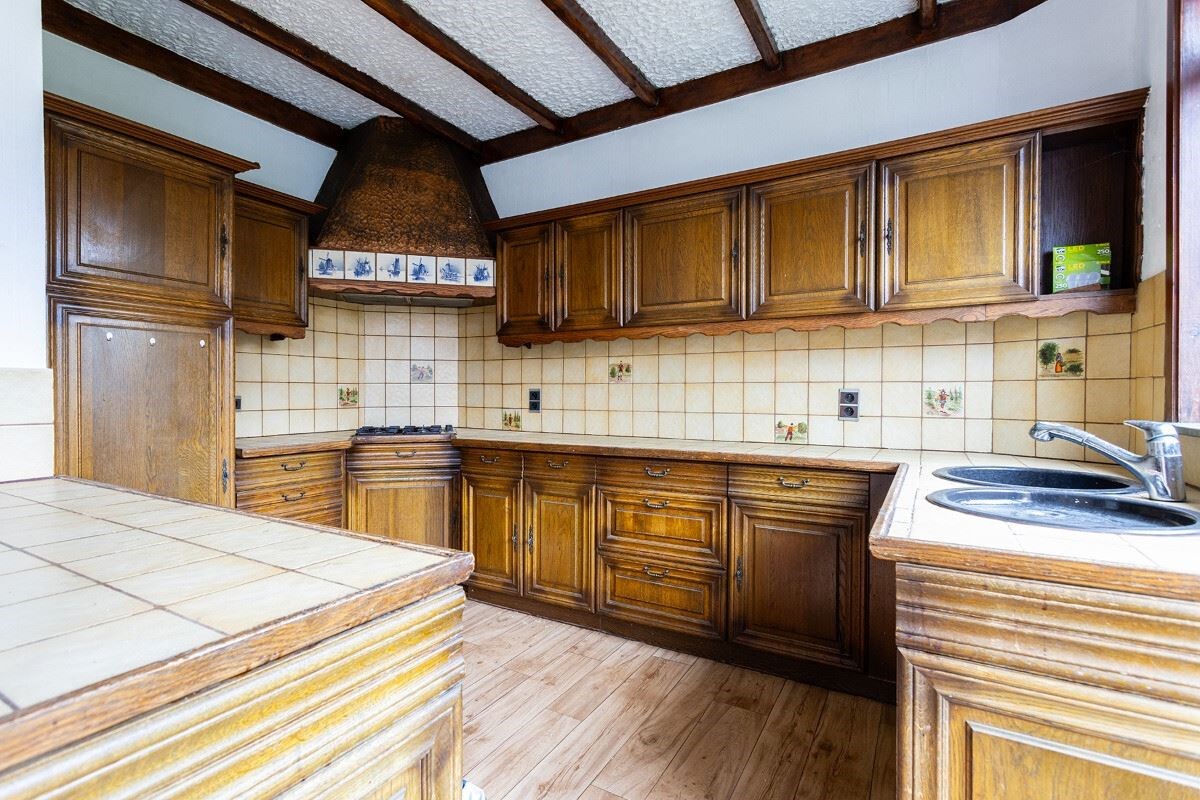 - 1steV: via de nachthal hebben we toegang tot de riante lichtrijke woonkamer met grote glaspartijen aan de voorzijde. Verder is er nog de karaktervolle keuken met kookplaat op gas, dampkap, vaatwasser, koelkast en spoelbak dubbel. Via de keuken is er een draaitrap naar het terras.