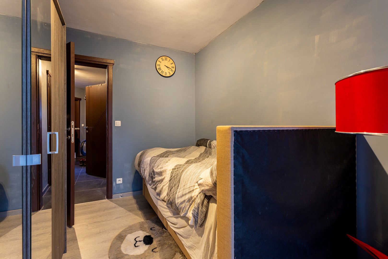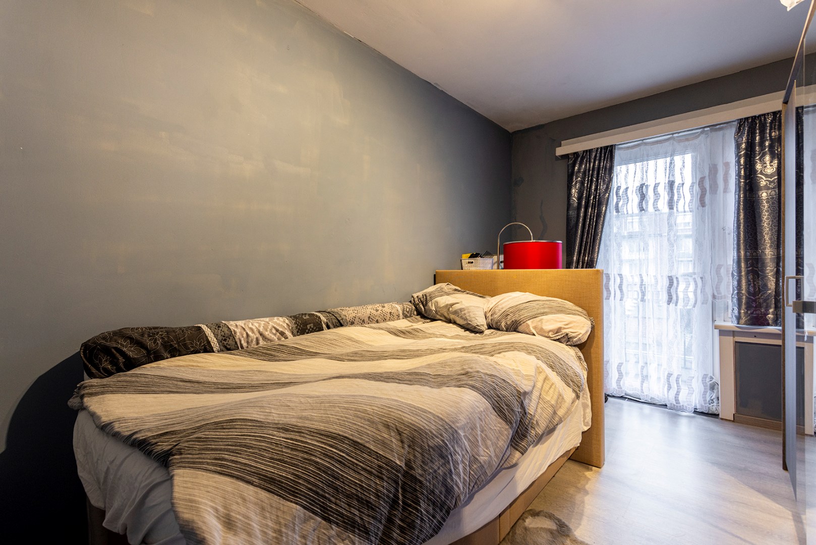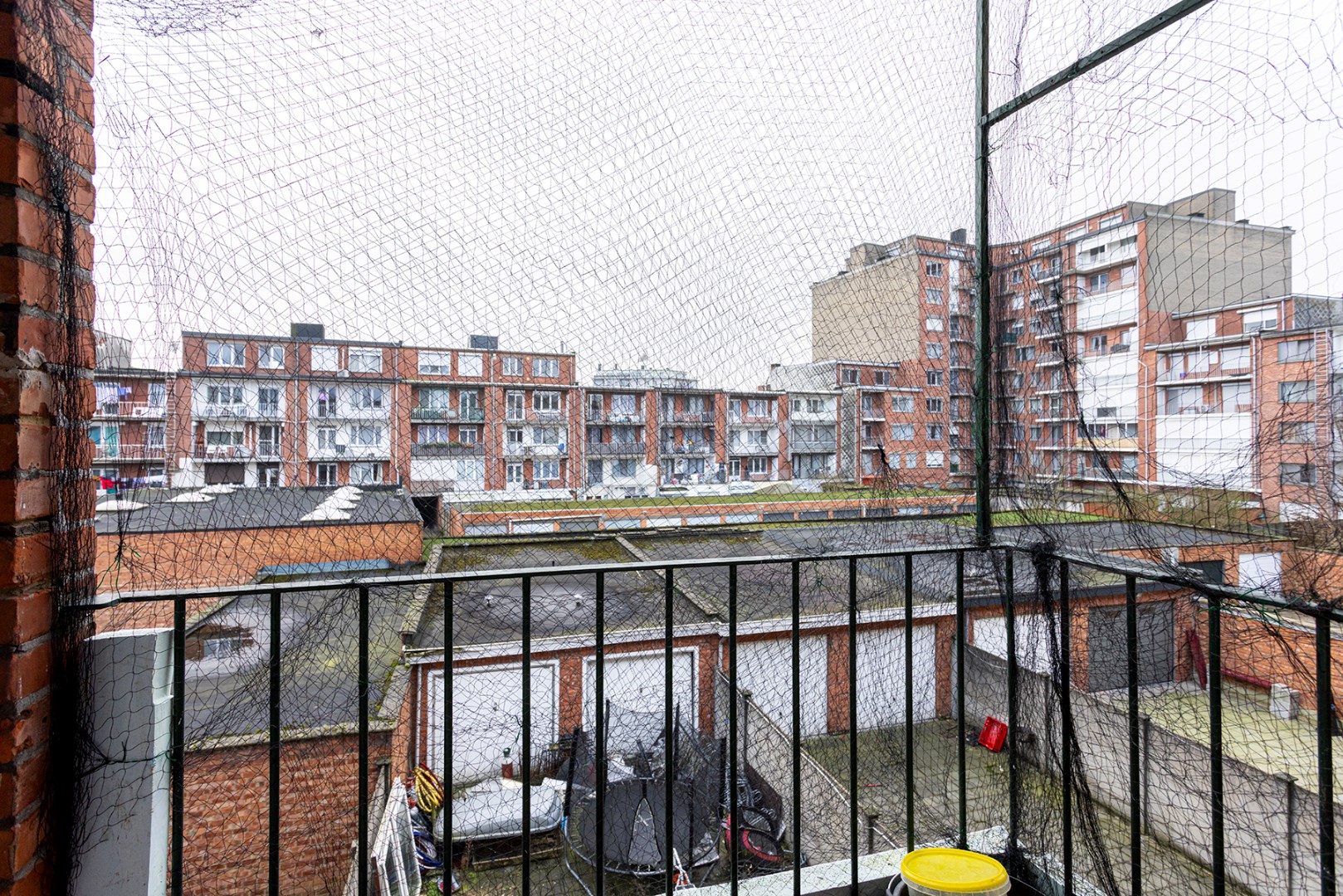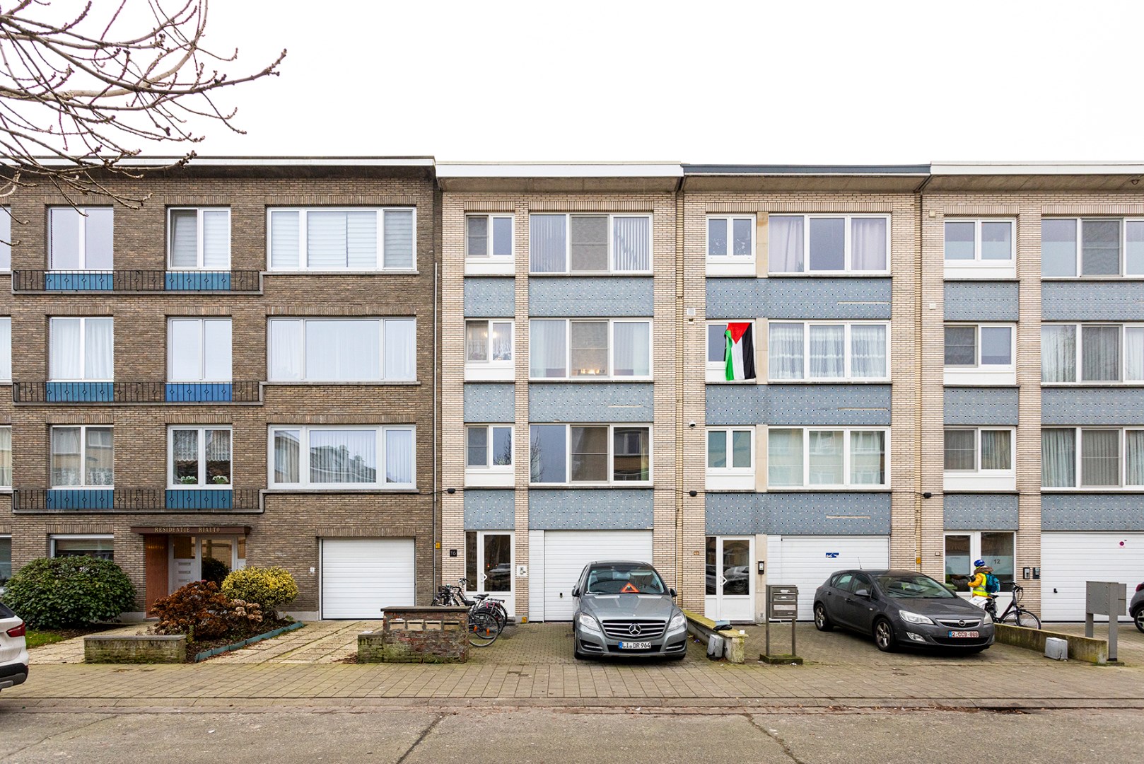 U betreedt het eigendom via een centraal gelegen inkomhal. Aan de voorzijde van het appartement situeren zich de ruime woonkamer en de keuken. In het midden vinden we een recent gerenoveerde badkamer met spoelbak verwerkt in meubel, een handdoekverwarmer, een douchecabine en een kast, alsook een apart toilet. Centraal gelegen bevindt zich een berging, die u kan inrichten als bureel of dressing. Aan de achterzijde vindt u twee ruime slaapkamers, waarvan de tweede doorgang geeft aan een terras.