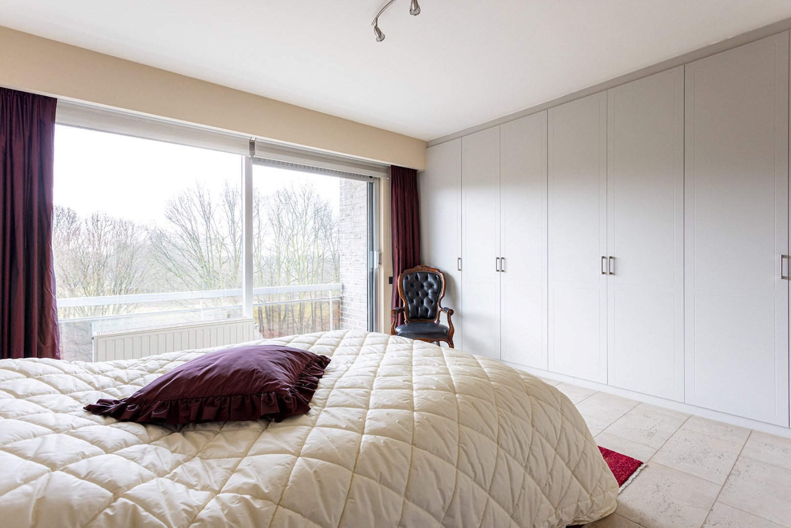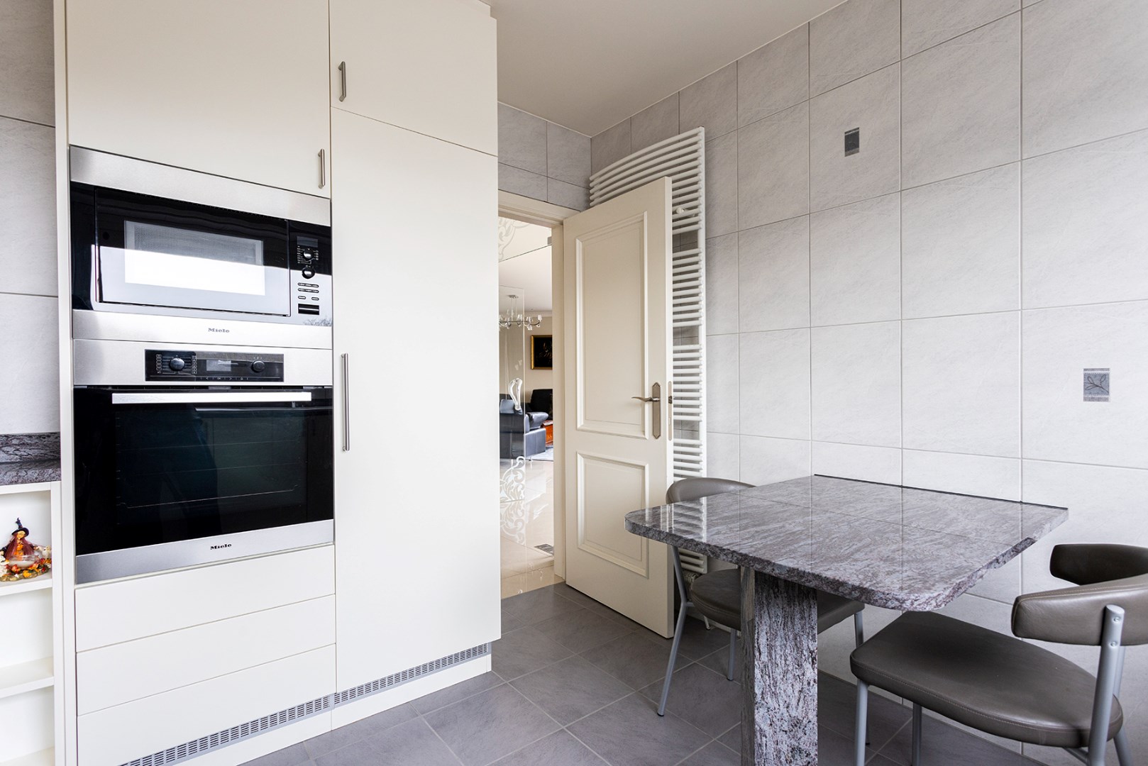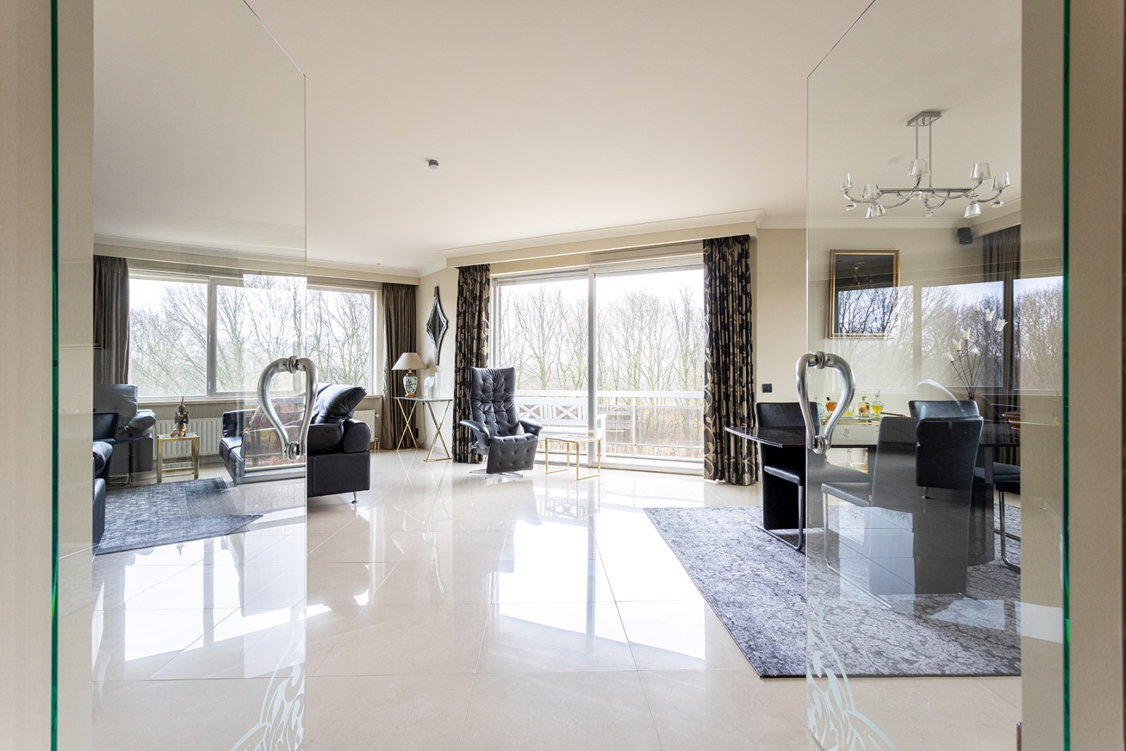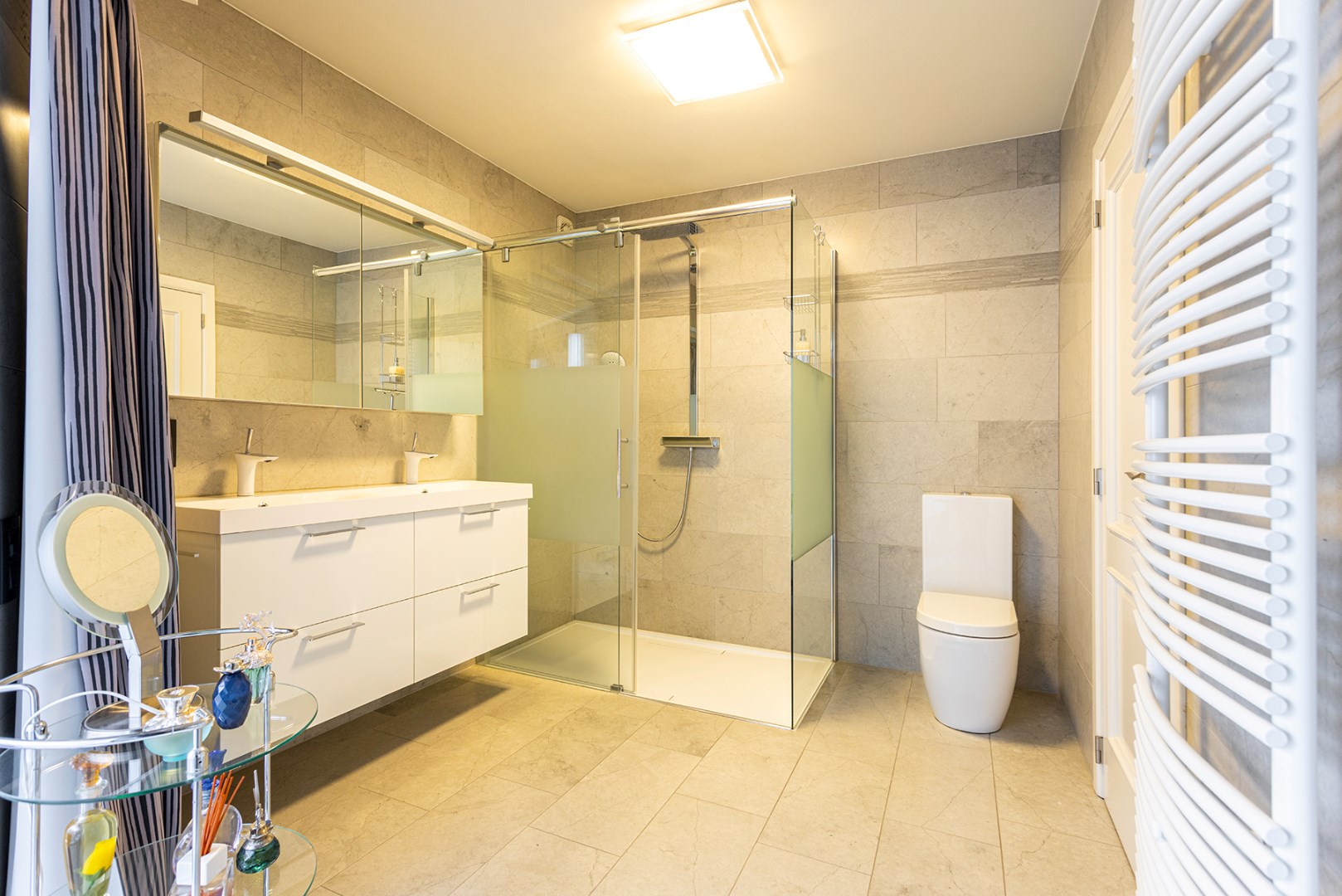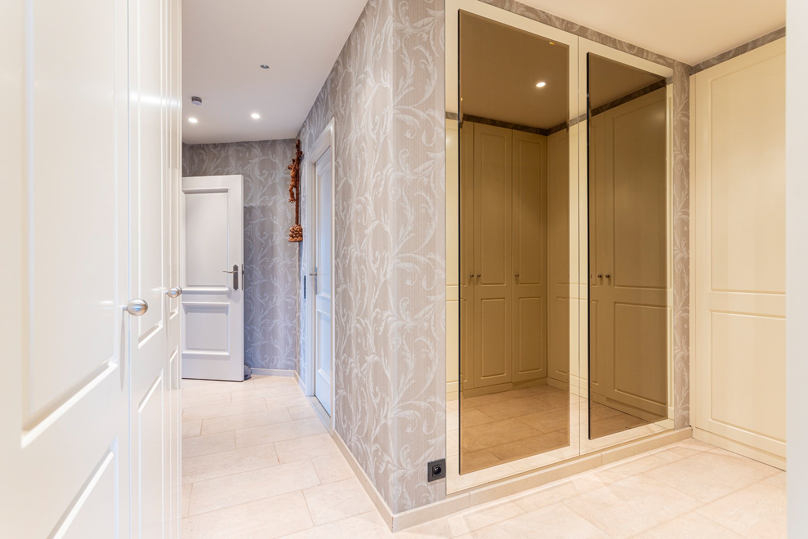 U komt binnen in een inkomhal die doorloopt in een nachthal, die vervolgens doorgang geeft aan alle ruimtes. Rechts van de veiligheidsvoordeur vindt u een enorme, L-vormige woonkamer van liefst 67m². Hier vindt u alvast een eerste terras, dewelke uitkijkt op de Bremweide. Vervolgens vindt u de keuken met natuurstenen werkblad en ingebouwde toestellen van topmerken. Naast de keuken situeert zich de bijkeuken/wasplaats, volledig afgewerkt met ingemaakte kasten. Verder door het appartement komen we de twee slaapkamers tegen van 14m² en 12m², beiden met ingemaakte kasten. Deze twee kamers hebben een gedeelde terras van 9m². Naast de tweede kamer situeert zich de badkamer met een inloopdouche en ingemaakte kasten. Ook deze ruimte heeft een eigen terras. Wanneer we de nachthal verder volgen, komen we in een ruimte met hoogwaardige ingemaakte kleerkasten en daarachter vindt u de master bedroom van maar liefst 20m². Deze ruimte heeft ook ingemaakte kasten en een eigen terras. De woonkamer, de slaapkamers en de badkamer zijn voorzien van elektrische rolluiken.