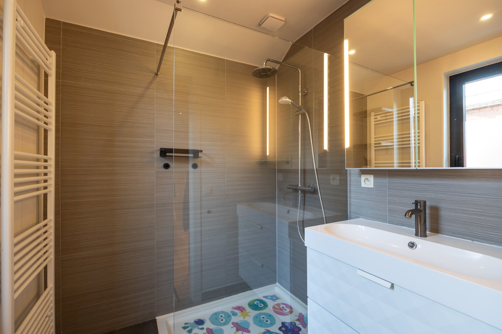 1steV: de nachthal heeft toegang tot de 2 slaapkamers, een apart toilet en de badkamer met inloopdouche en wastafel enkel.