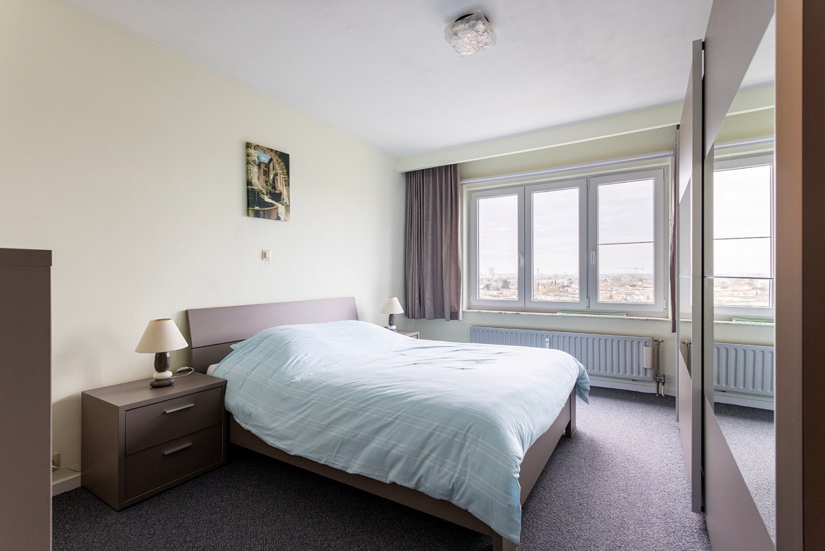 Bent u op zoek naar een leuk appartement met 2 slaapkamers, terras en garagebox, ideaal als startersappartement? Hecht u veel belang aan een vrij en adembenemend uitzicht? Dan stellen wij graag volgend appartement op de 8ste verdieping aan u voor! Het appartement is gelegen in een verzorgd gebouw.