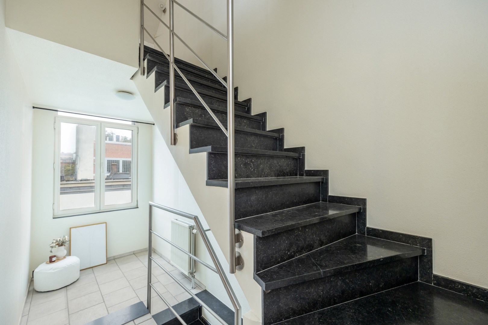 De woning is ideaal om wonen en werken te combineren. Een grote troef is de lift. Het gelijkvloers beschikt over een garage. Daarnaast is er een polyvalente ruimte die kan worden gebruikt als kantoor of gastenkamer, evenals een compacte badkamer. Op de 1ste verdieping bevindt zich de lichte leefruimte die verbonden is met de open keuken, voorzien van alle moderne comfort. De verbondenheid van beide ruimtes creëert een openheid die zorgt voor een gevoel van rust. Verder is er een praktische berging en een gastentoilet. Op de 2e verdieping vindt u een ruime slaapkamer met een eigen badkamer, voorzien van een bad en douche. Daarnaast is er een tweede slaapkamer met een dressing. Op de 3e verdieping bevindt zich een slaapkamer met een en-suite douchekamer. Hier kunt u ook genieten van een groot terras 28m². Ligging: Deze woning bevindt zich in het bruisende historische centrum, vlakbij het beroemde Hessenhuis. Op loopafstand van het MAS, het Eilandje en talloze gezellige restaurants. Kortom, deze woning ligt op een centrale toplocatie.