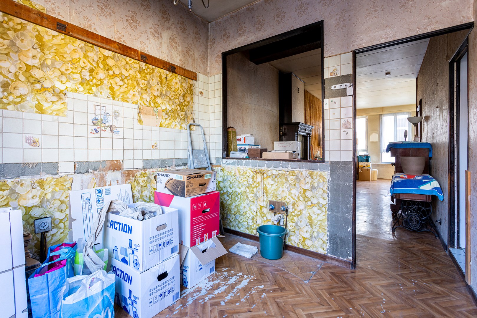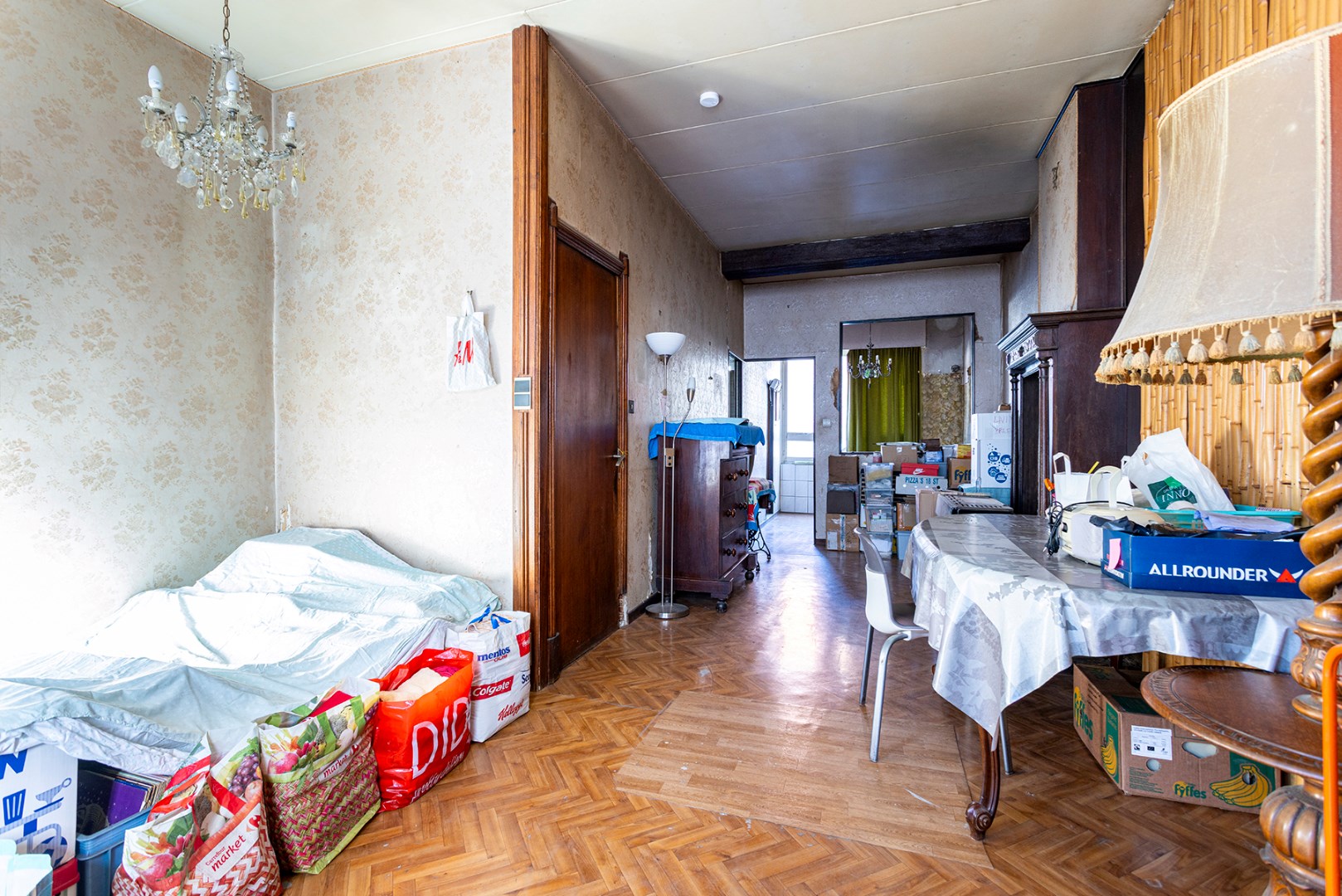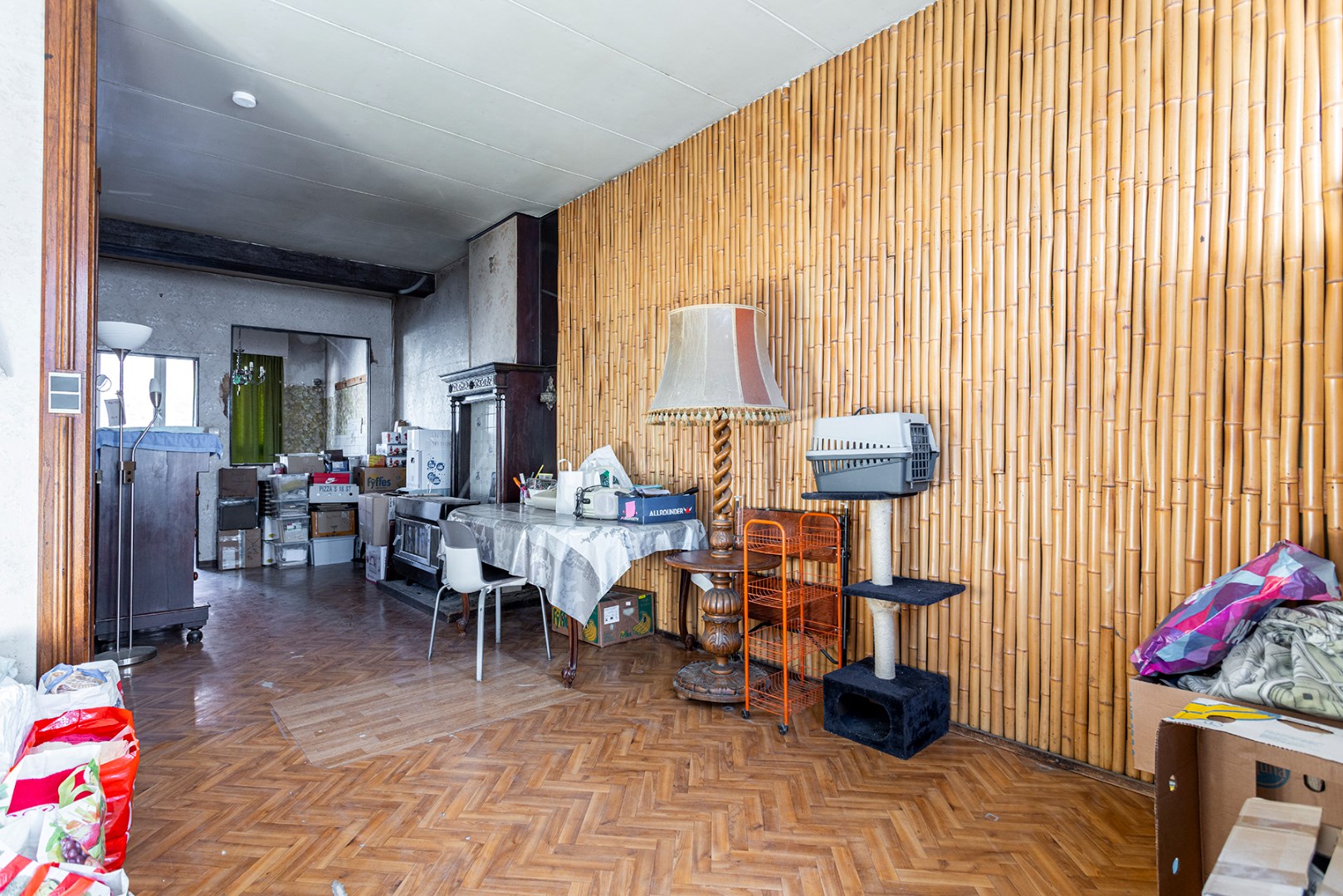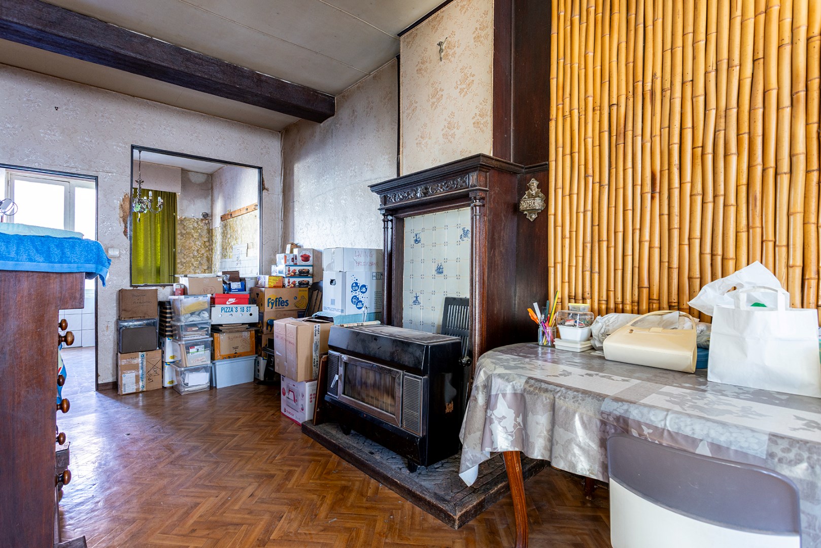 Op de 1ste verdieping bevinden zich momenteel de leefruimte, keuken en badkamer.