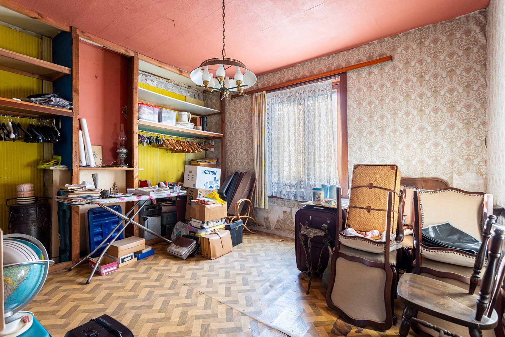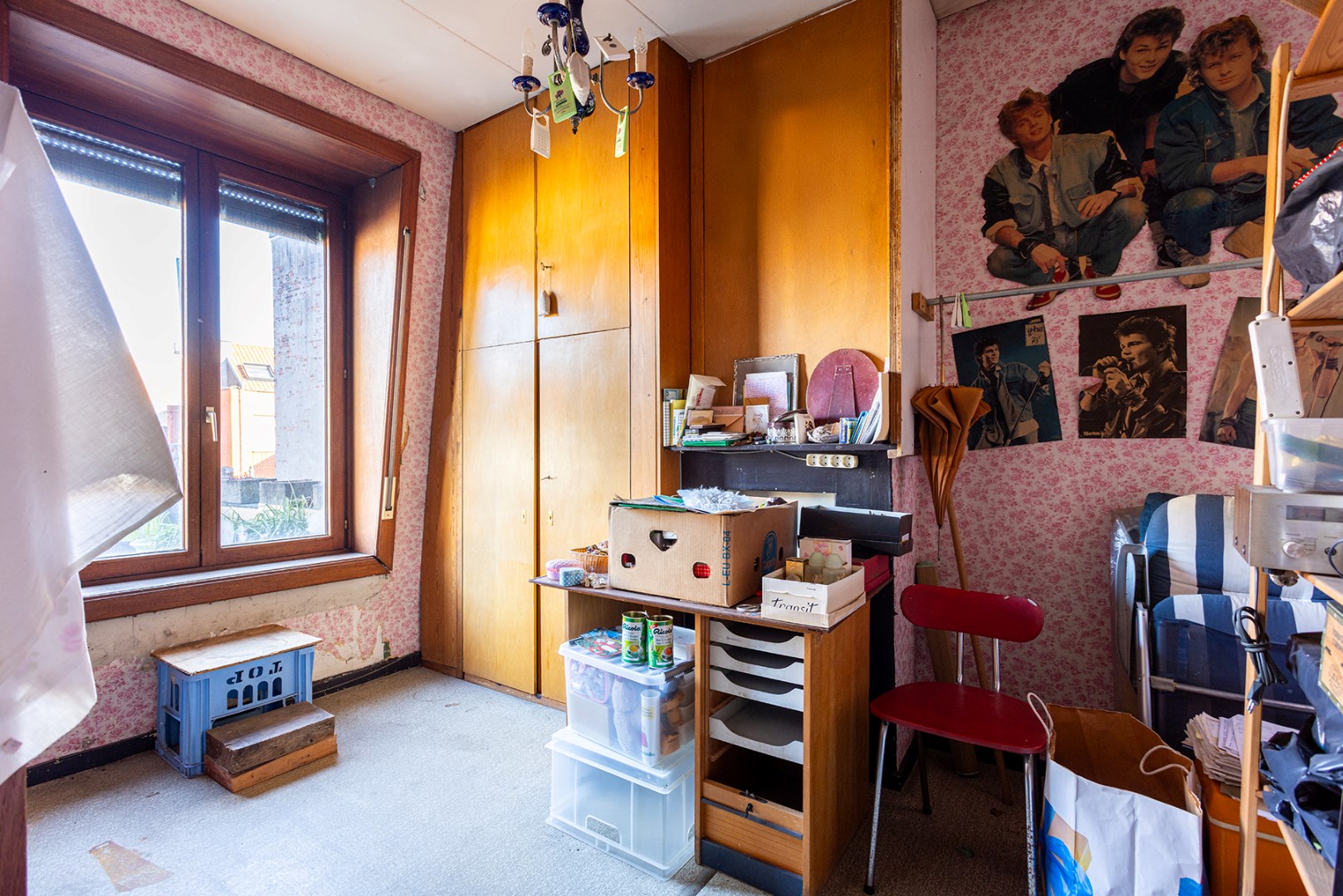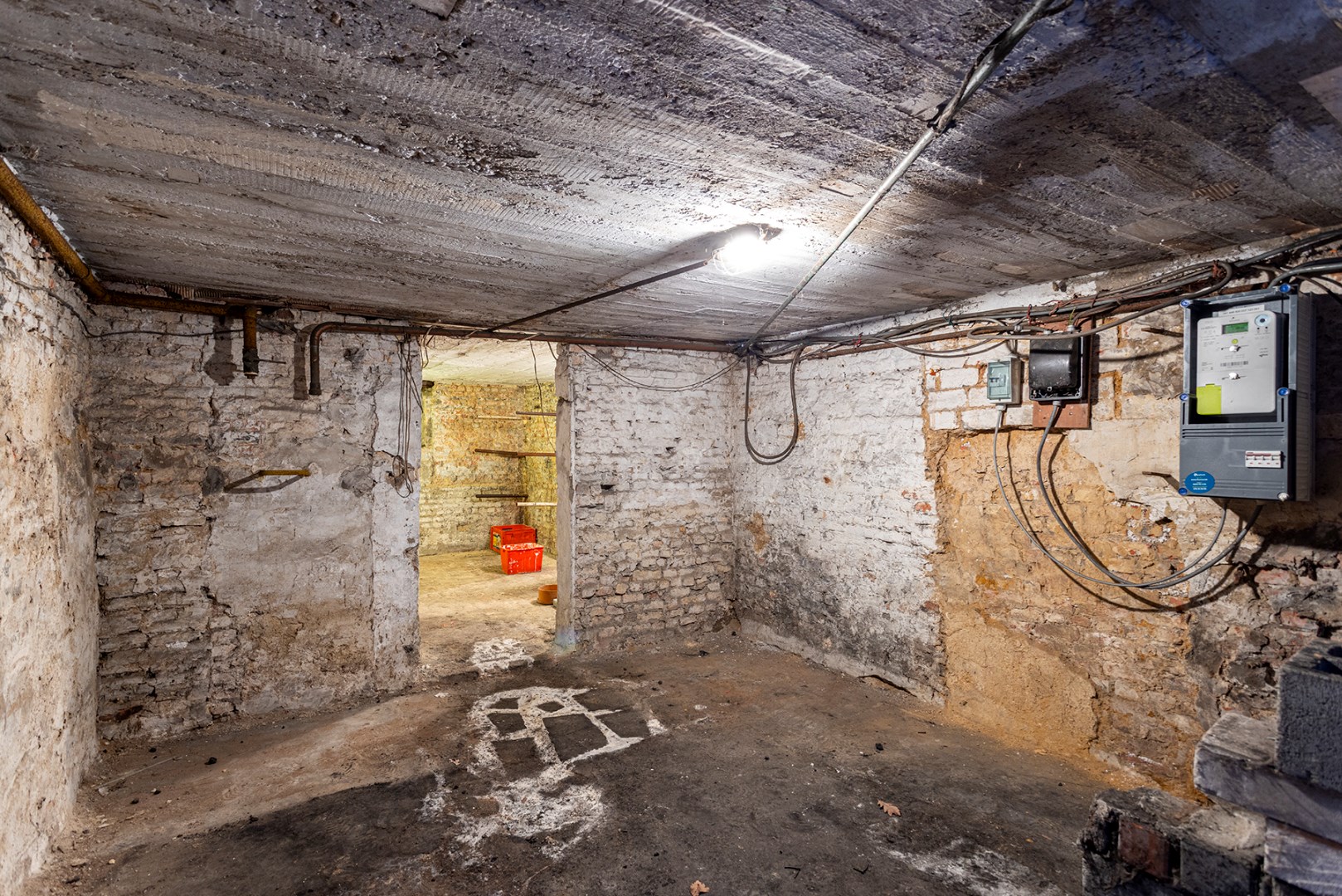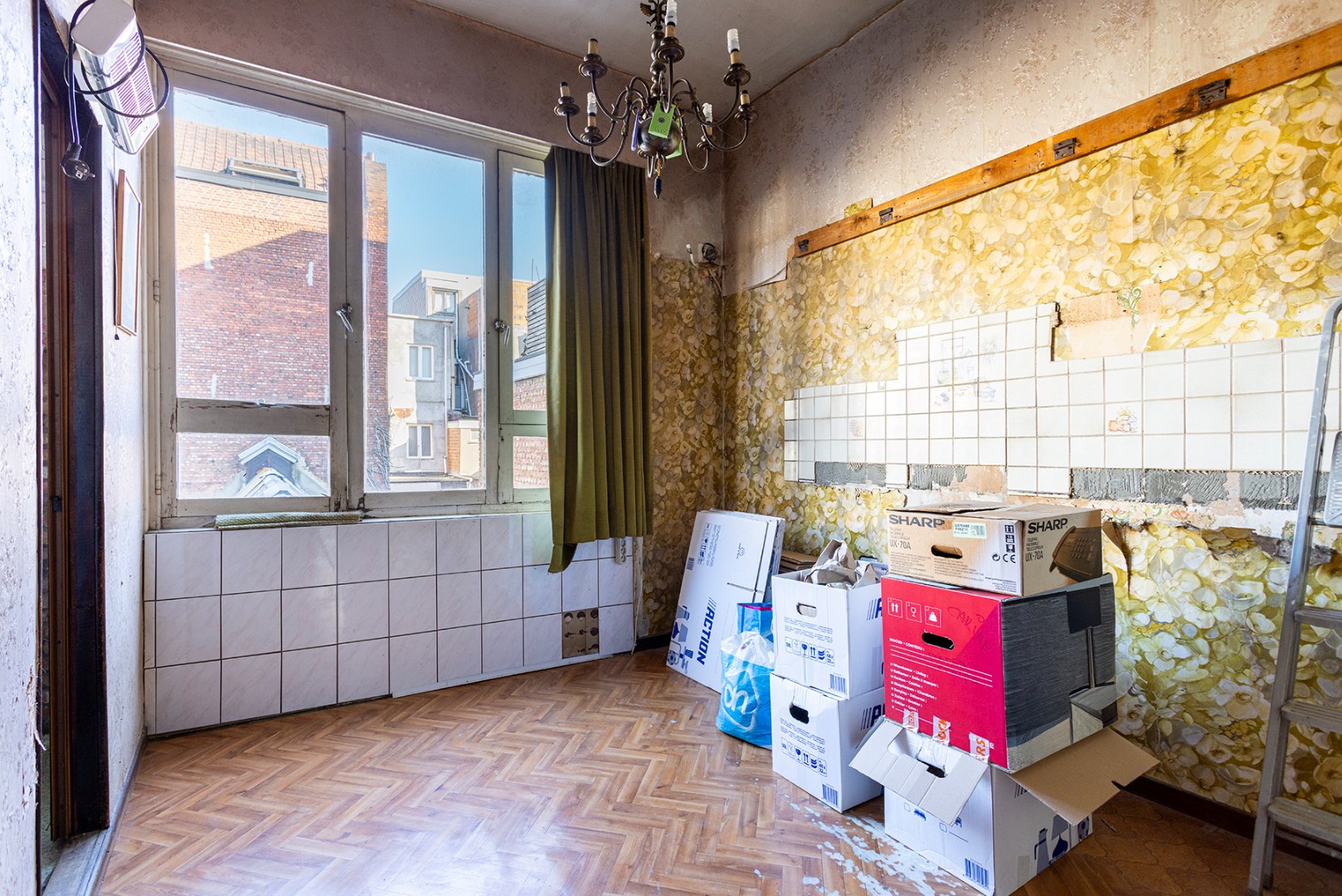 Op de 1ste verdieping bevinden zich momenteel de leefruimte, keuken en badkamer.