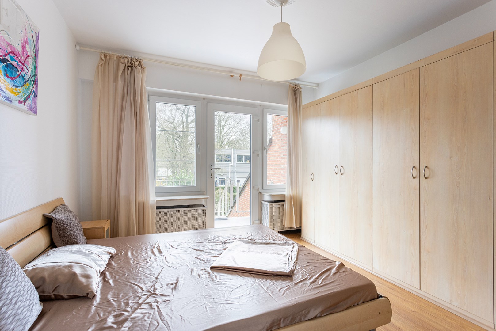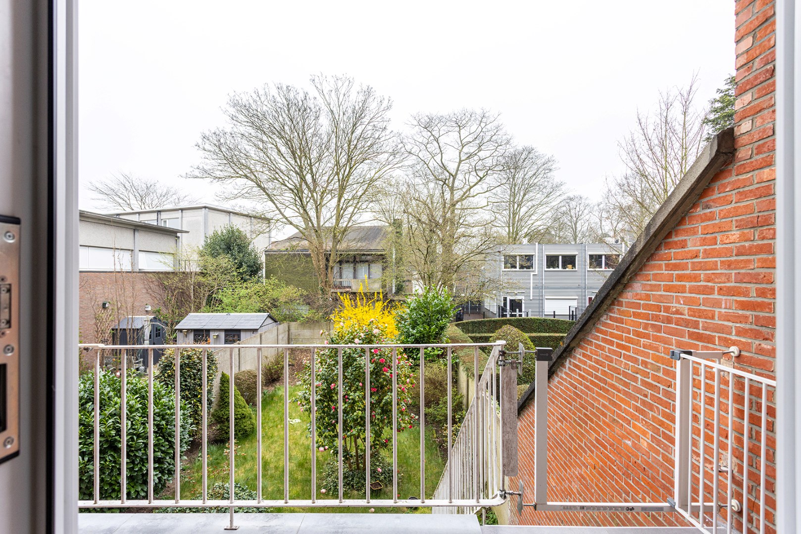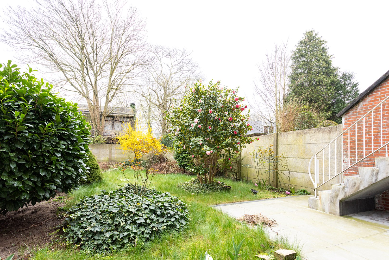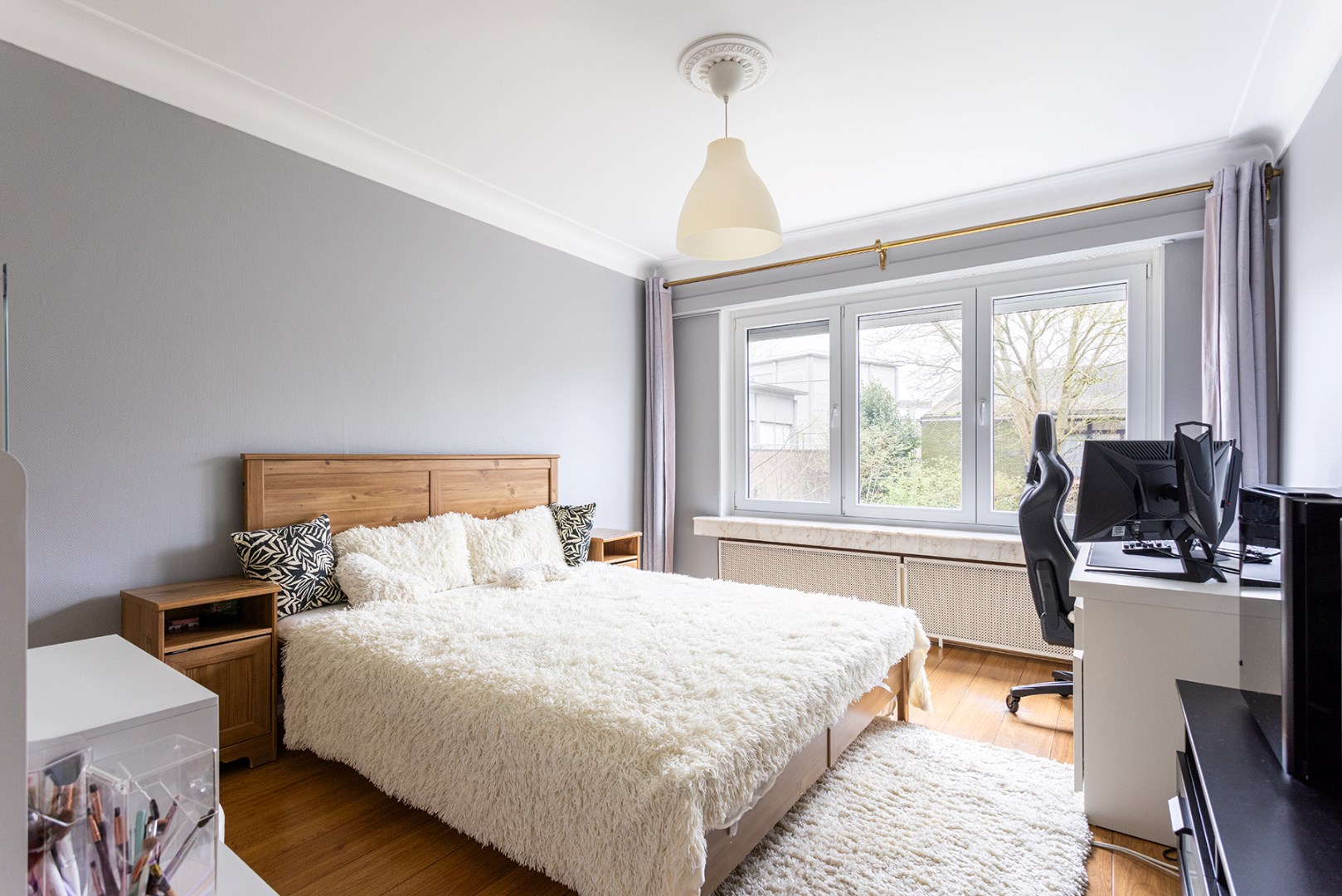 Verder zijn er twee slaapkamers (14m² en 12m²) achteraan en een dressing van 6,5m² (zonder raam). De kleinste slaapkamer geeft doorgang aan het terras die op zich een trap naar de tuin heeft.