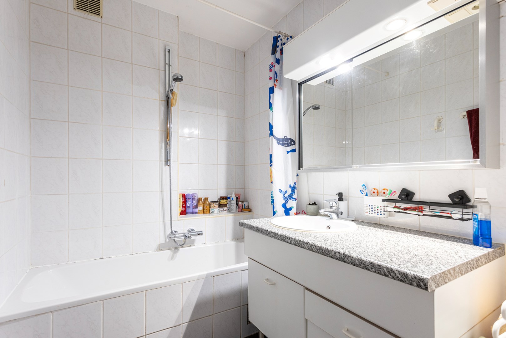 De badkamer (4m²) heeft een ligbad met douchefunctie en een enkele lavabo. Er is een apart gastentoilet met handenwasser.