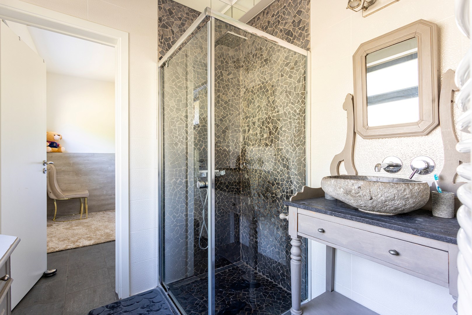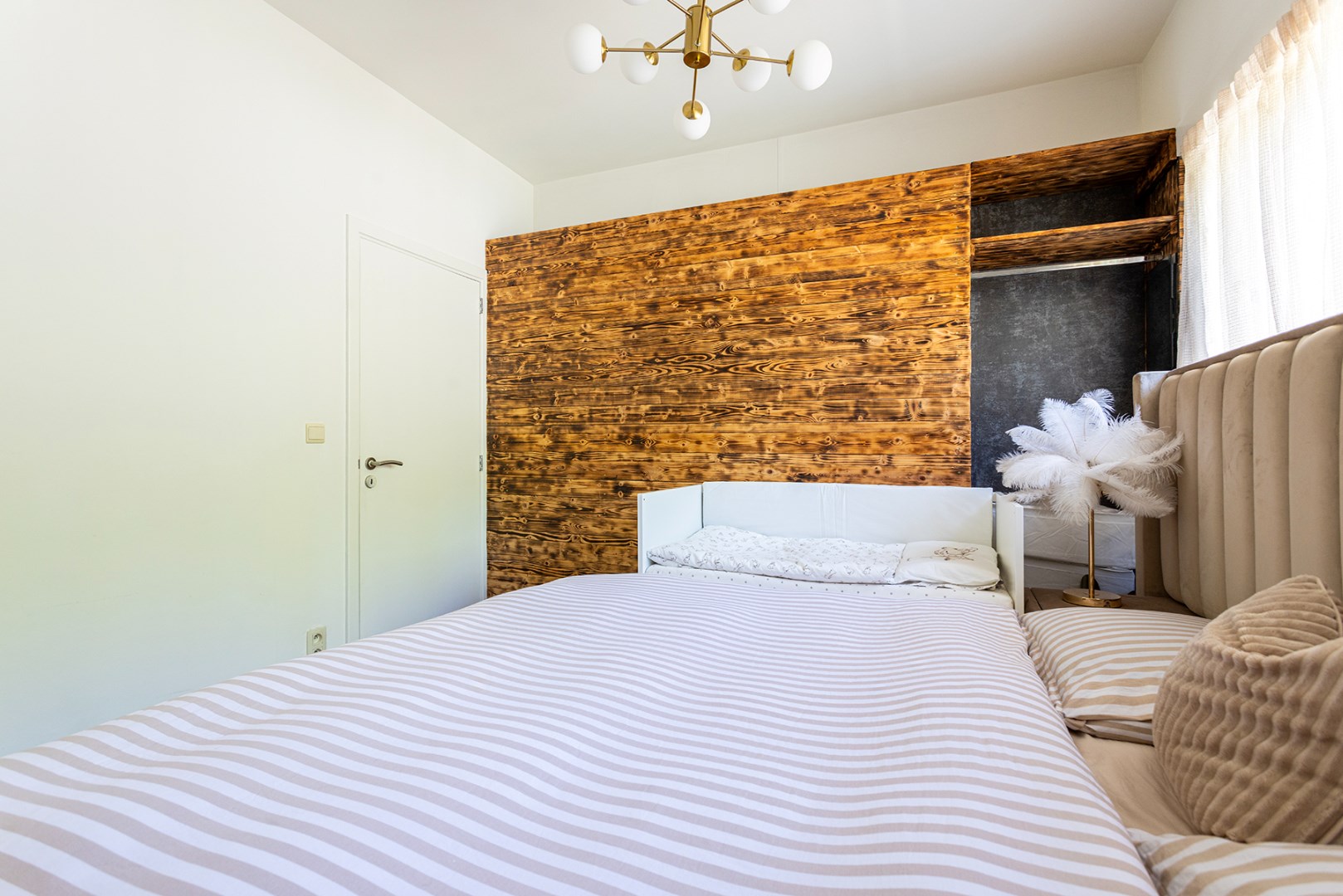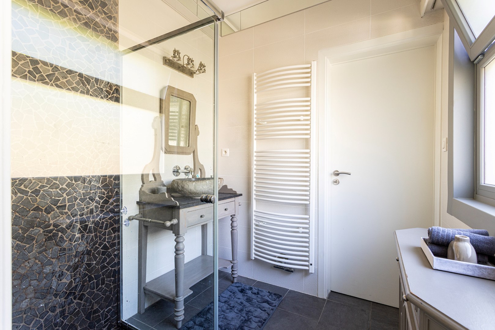 De grote slaapkamer kan u bereiken via de woonkamer. Hierlangs vindt u de badkamer met douche en verder de tweede slaapkamer. Deze laatste is ingericht als dressing.
