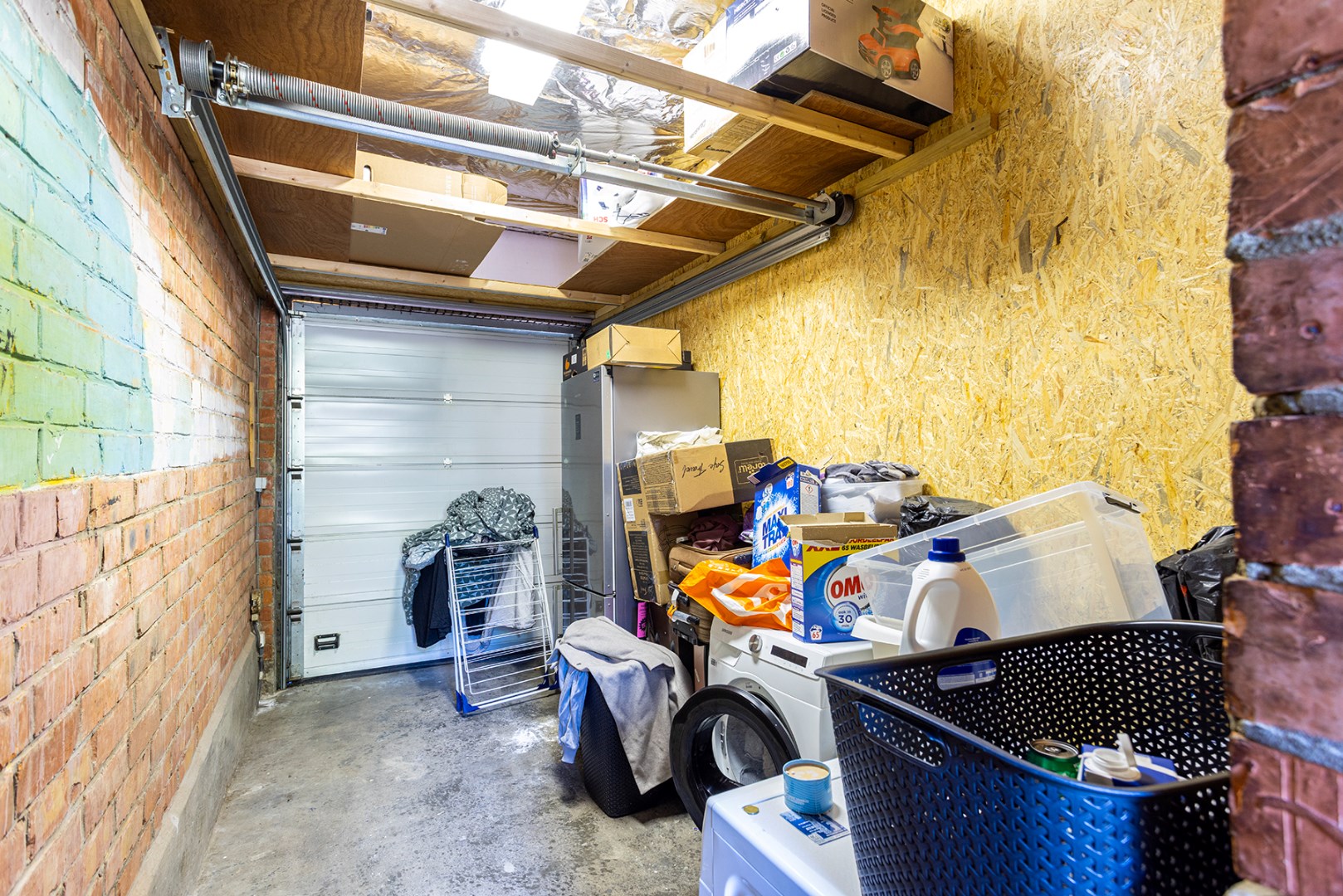 Het appartement beschikt over een garagebox, waar u de aansluitingen van de wasmachine en droogkast kan terugvinden. Deze garagebox is inbegrepen in de vraagprijs! U kan de garagebox tevens via de tuin betreden.