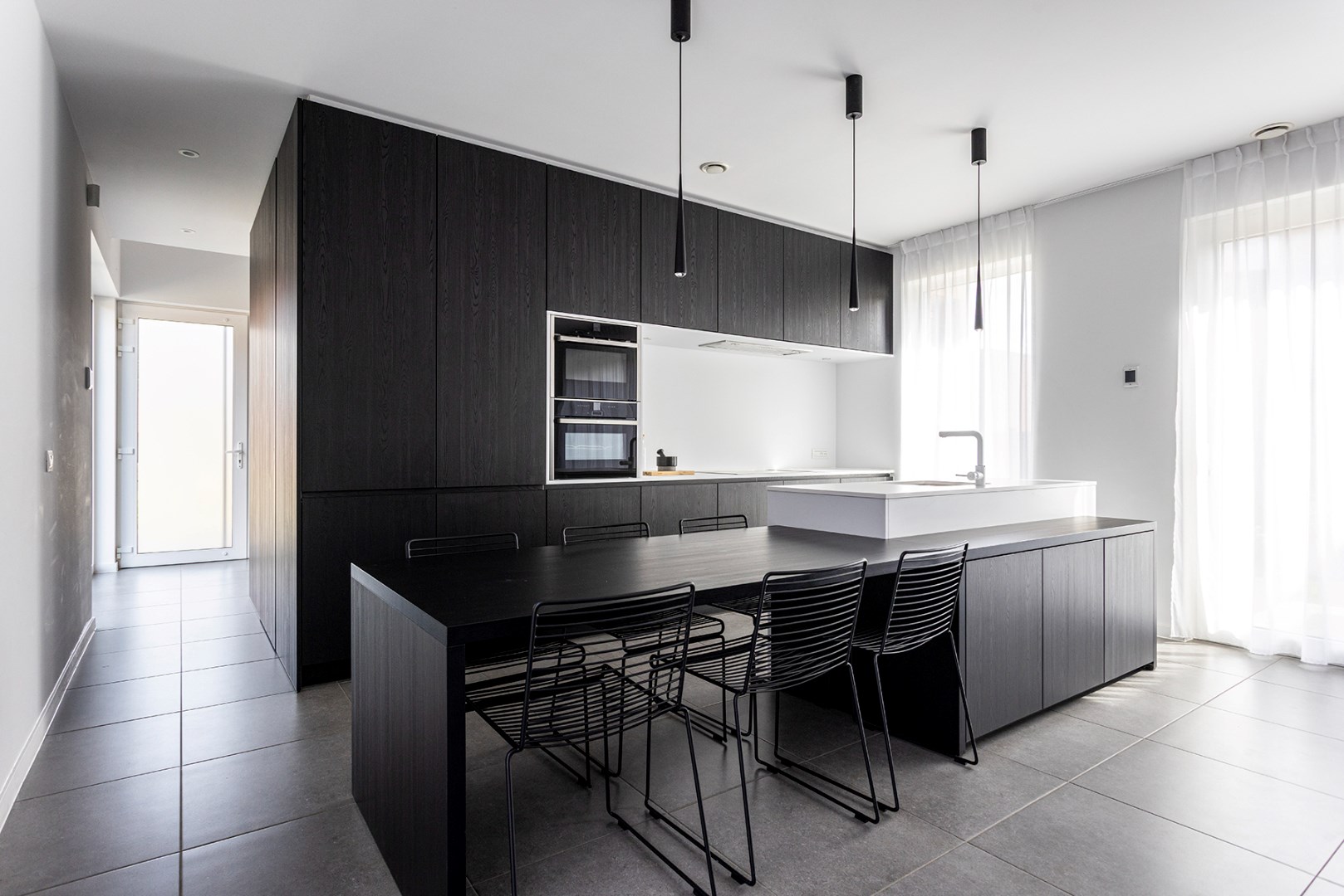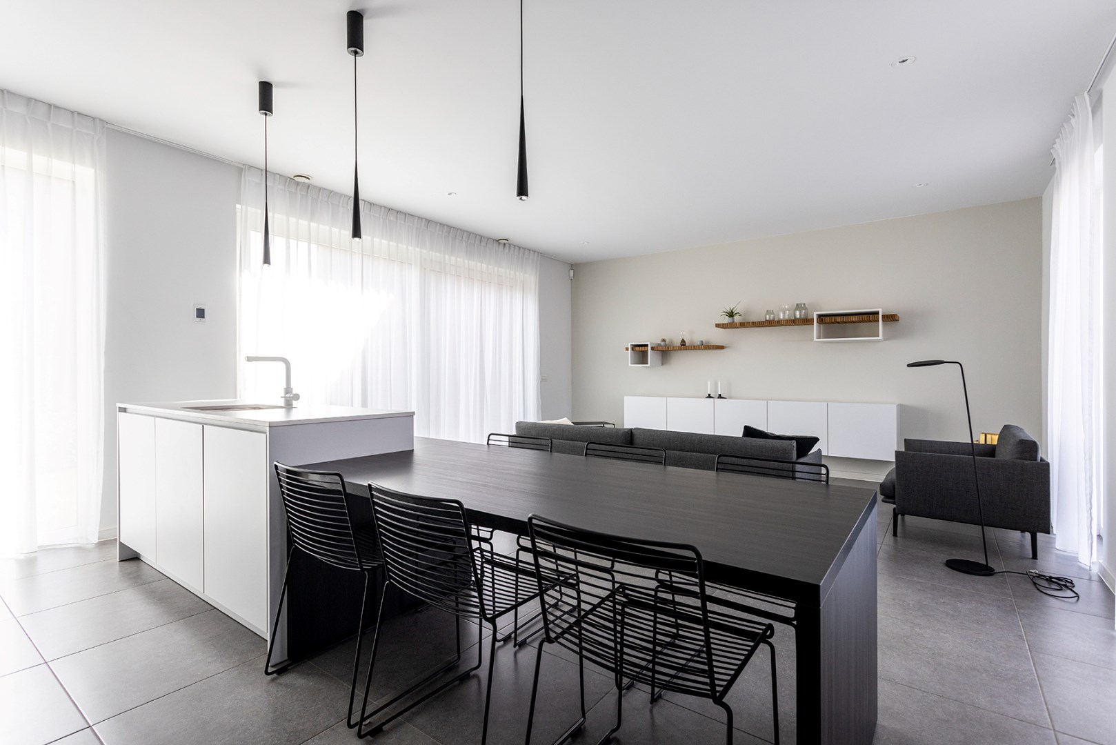 De lichtrijke leefruimte sluit naadloos aan op de open keuken, die voorzien is van kwalitatieve inbouwtoestellen en een praktisch kookeiland met een geïntegreerde eettafel. Dankzij de grote raampartijen geniet u hier van een optimale lichtinval en een mooi zicht op de tuin. Langs de woning is een carport aanwezig, voorzien van elektriciteit en watervoorziening.