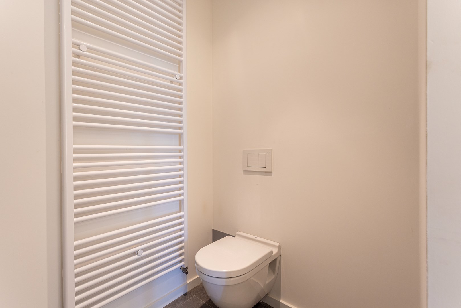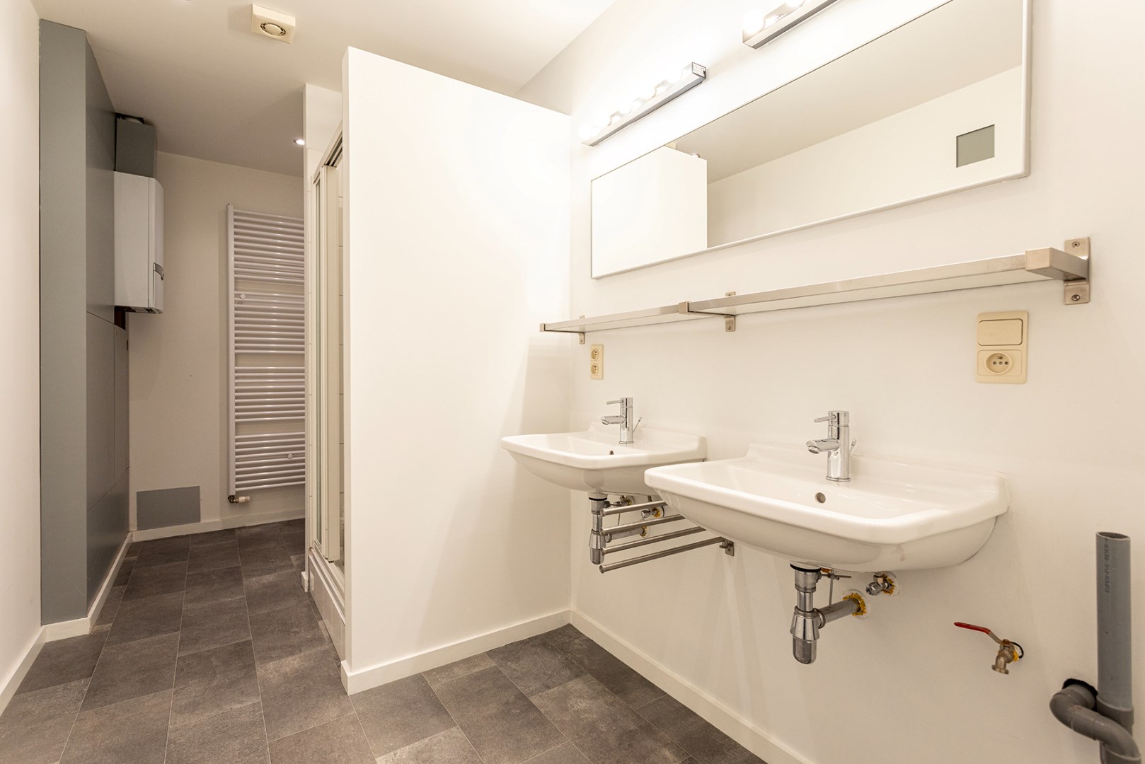 Achteraan vindt u dan de rustig gelegen slaapkamer en de moderne badkamer met douche, dubbele lavabo, toilet, alsook de aansluiting voor de wasmachine en droogkast.