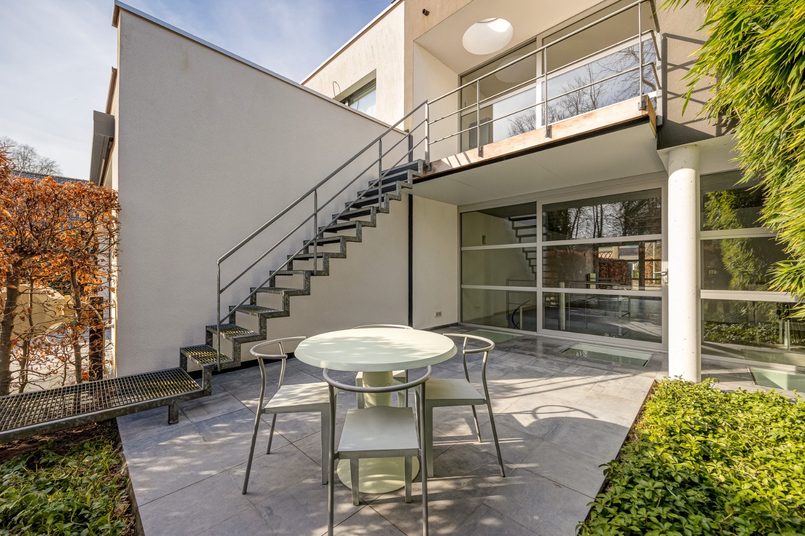 Deze ruimte maakt deel uit van een modern architectengebouw uit 1996. Het kantoor met toilet bevindt zich op de benedenverdieping. Achteraan is er een draaitrap naar de ondergrondse bureauruimte met natuurlijk lichtinval, dankzij de glasplaat. Verder is er een rustgevend terras om even te kunnen ontspannen. Vooraan is er parking voorzien.