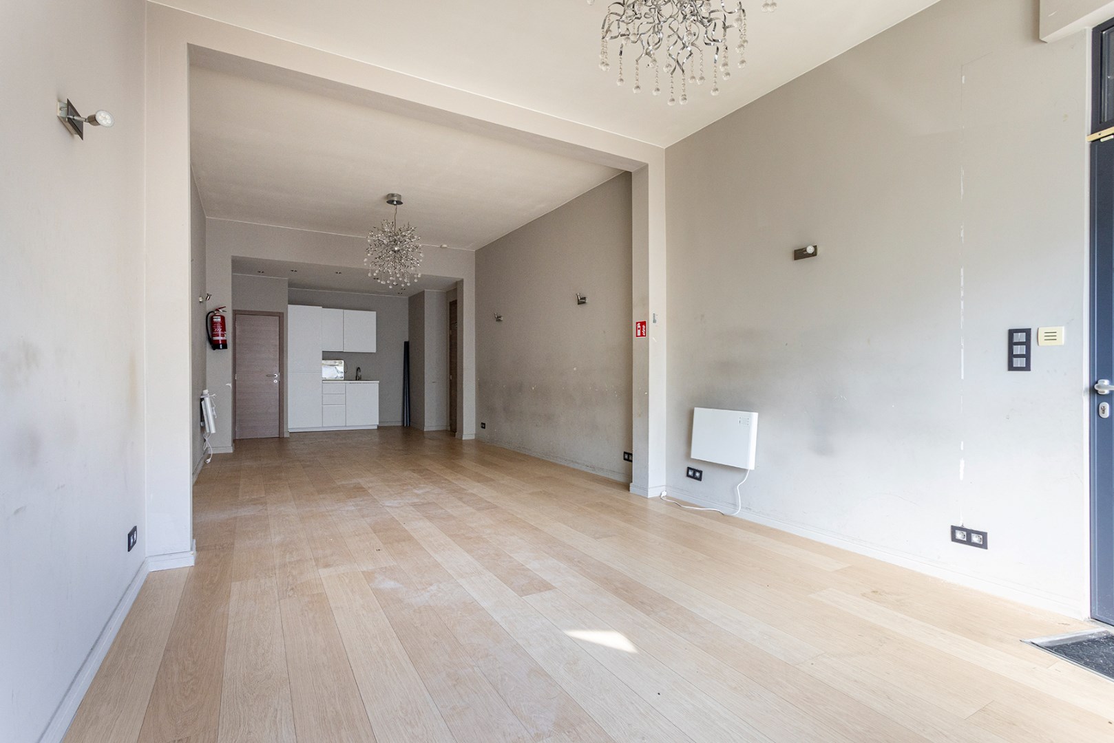 Gemeenschappelijke kosten: €85/maand (provisie minuterie + privatief verbruik van elektriciteit, water en verwarming)