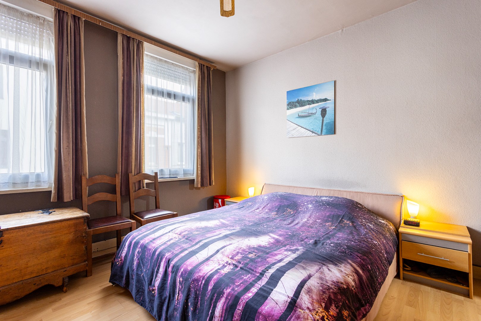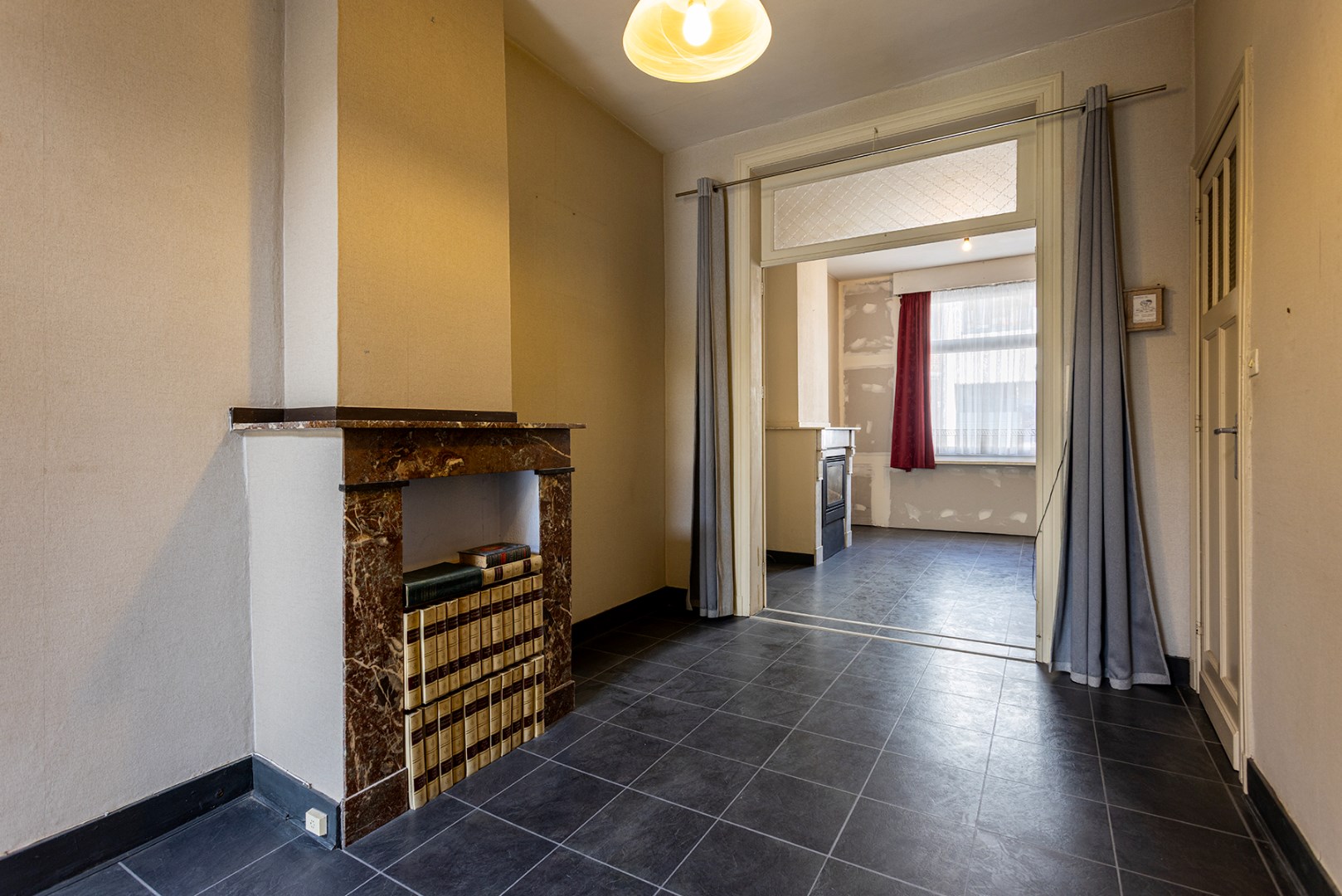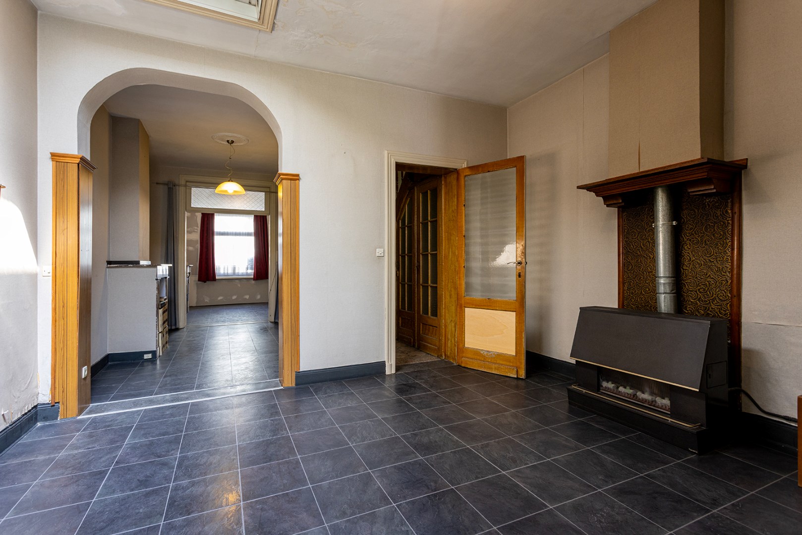 Op het gelijkvloers kom je binnen in een sfeervolle inkomhal met vestiaire. De originele molures en mozaïektegels trekken meteen de aandacht. Hier start je ontdekkingstocht naar de ruime leefruimte en grote keuken. Deze laatste biedt toegang tot een westgerichte tuin – perfect voor spelende kinderen en gezellige zomeravonden. Op de eerste verdieping vind je twee comfortabele slaapkamers en een badkamer met toilet, douche en dubbele wastafel in meubel. De authentieke trap brengt je naar de tweede verdieping met nog twee grote kamers. Tot slot is er ook een ruime, droge kelder: handig voor extra opslag of een hobbyruimte.