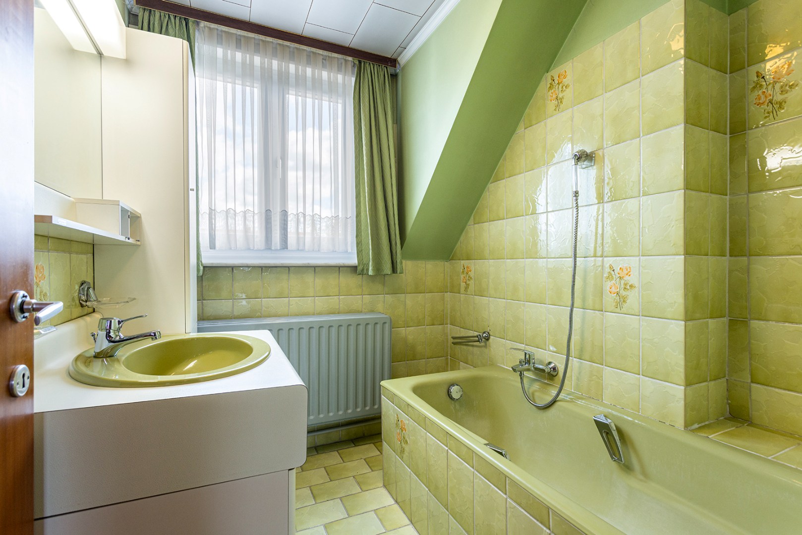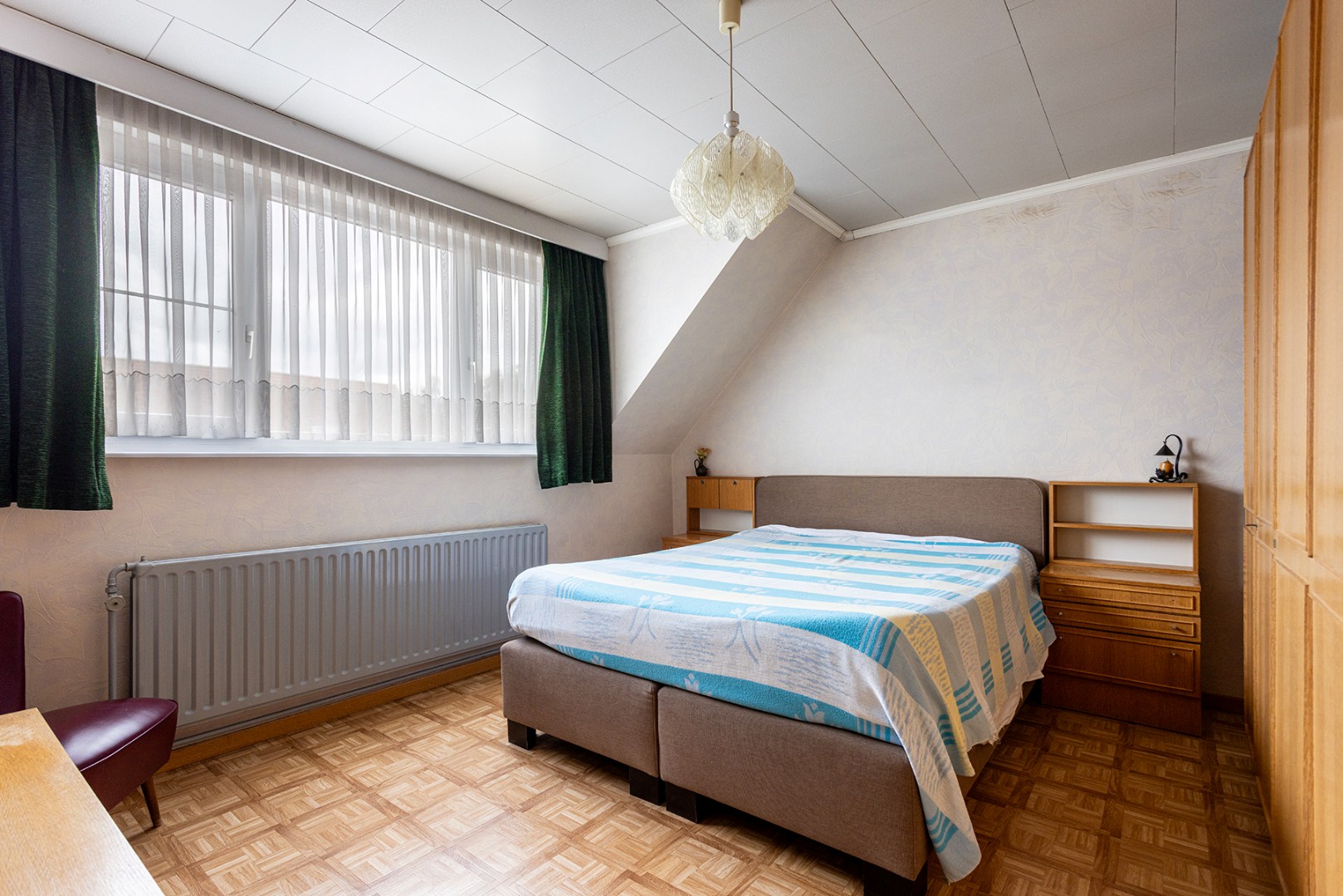 - 2deV: de nachthal geeft toegang naar 2 ruime slaapkamers, een extra bergruimte en de badkamer met ligbad en wastafel enkel in meubel.