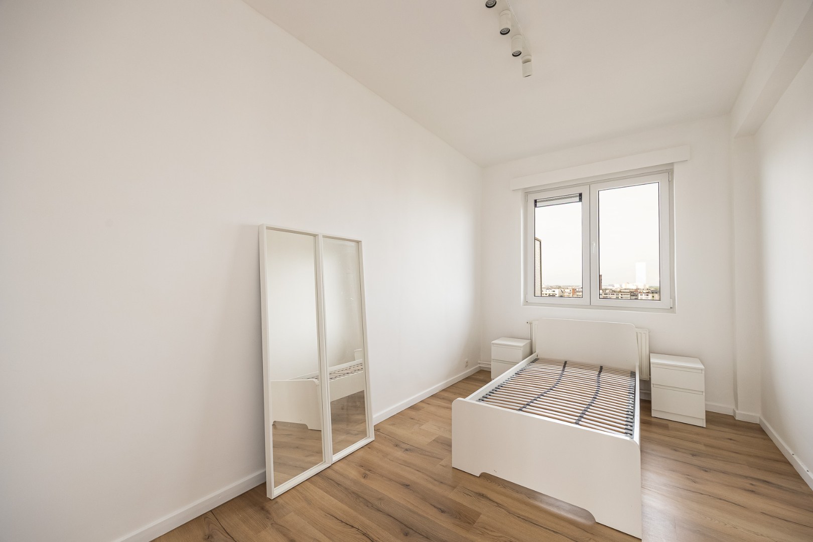 Geniet u graag van een vrij zicht over de stad en verkiest u te kunnen genieten van een uitstekende bereikbaarheid (lees: alles op wandelafstand)? Dan stellen wij u met plezier dit deels gerenoveerd appartement met twee slaapkamers en terras op de 9de verdieping voor!
