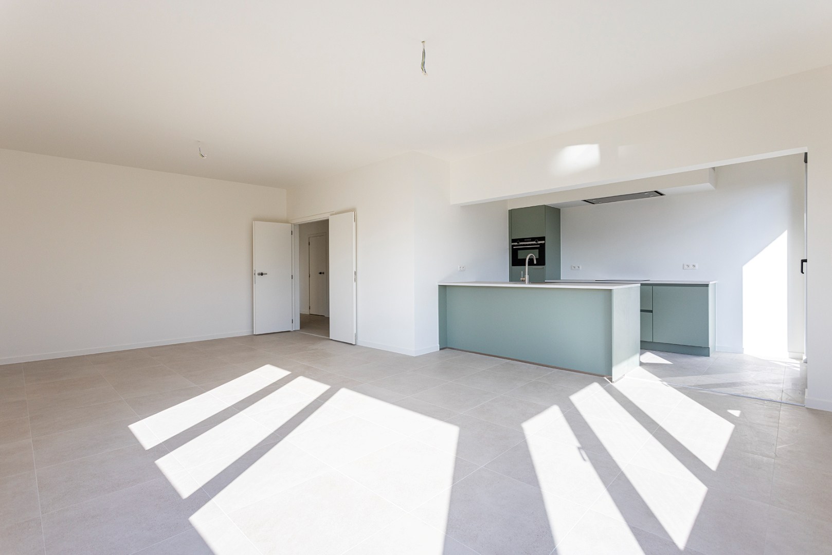 Dit ruime appartement van biedt een open en lichte woonkamer met geïntegreerde keuken van 42 m², met directe toegang tot een zonnig terras, ideaal om te ontspannen. Het appartement beschikt over twee slaapkamers van 19 m² en 15 m²; de tweede slaapkamer heeft eveneens een eigen terras van 8 m², zodat u op meerdere plekken van buiten kunt genieten. Verder is er een smaakvolle badkamer met inloopdouche, een apart toilet en een bijhorende privatieve kelder. Optioneel kunt u een overdekte autostaanplaats aankopen voor € 27.500 (exclusief van de vraagprijs).