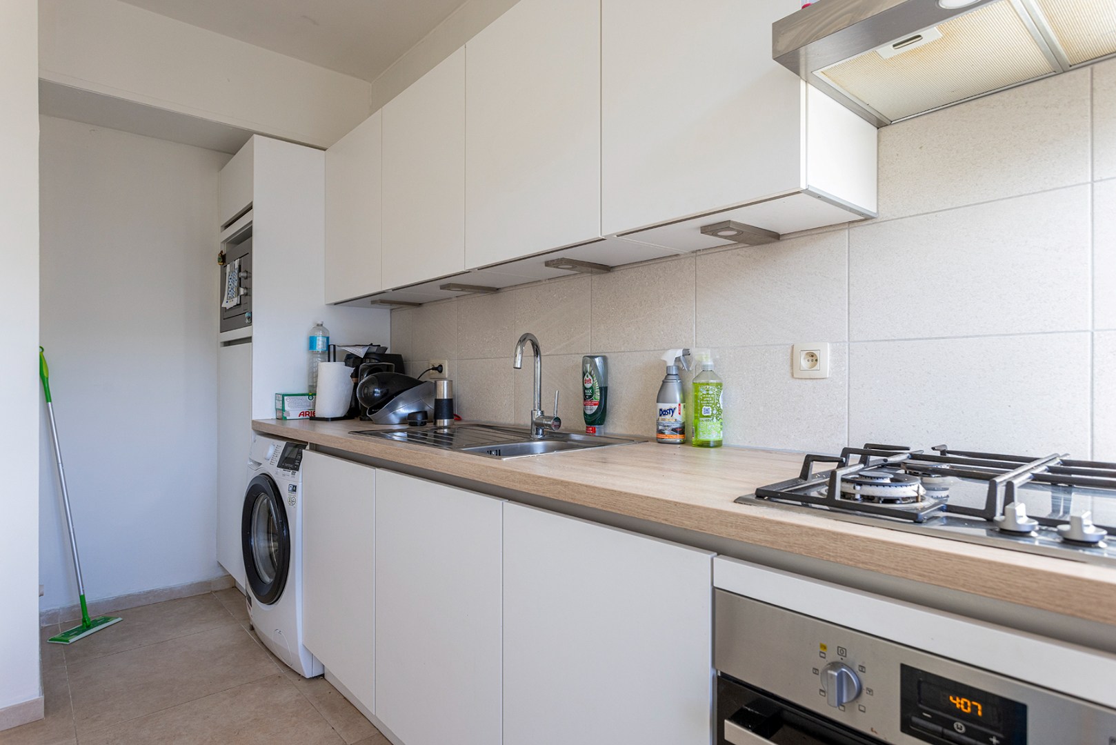 U komt binnen in een inkomhal met vestiaire en apart toilet. Vooraan bevinden zich de ruime living met aansluitend de nieuw ingerichte keuken en terras. De modern ingerichte keuken is voorzien alle comfort en heeft een aansluiting voor een wasmachine of vaatwasser. Centraal vindt men de vernieuwde badkamer met inloopdouche, lavabomeubel en handdoekdroger. Verder zijn er twee slaapkamers. De kleinste kamer geeft doorgang aan een tweede terras.