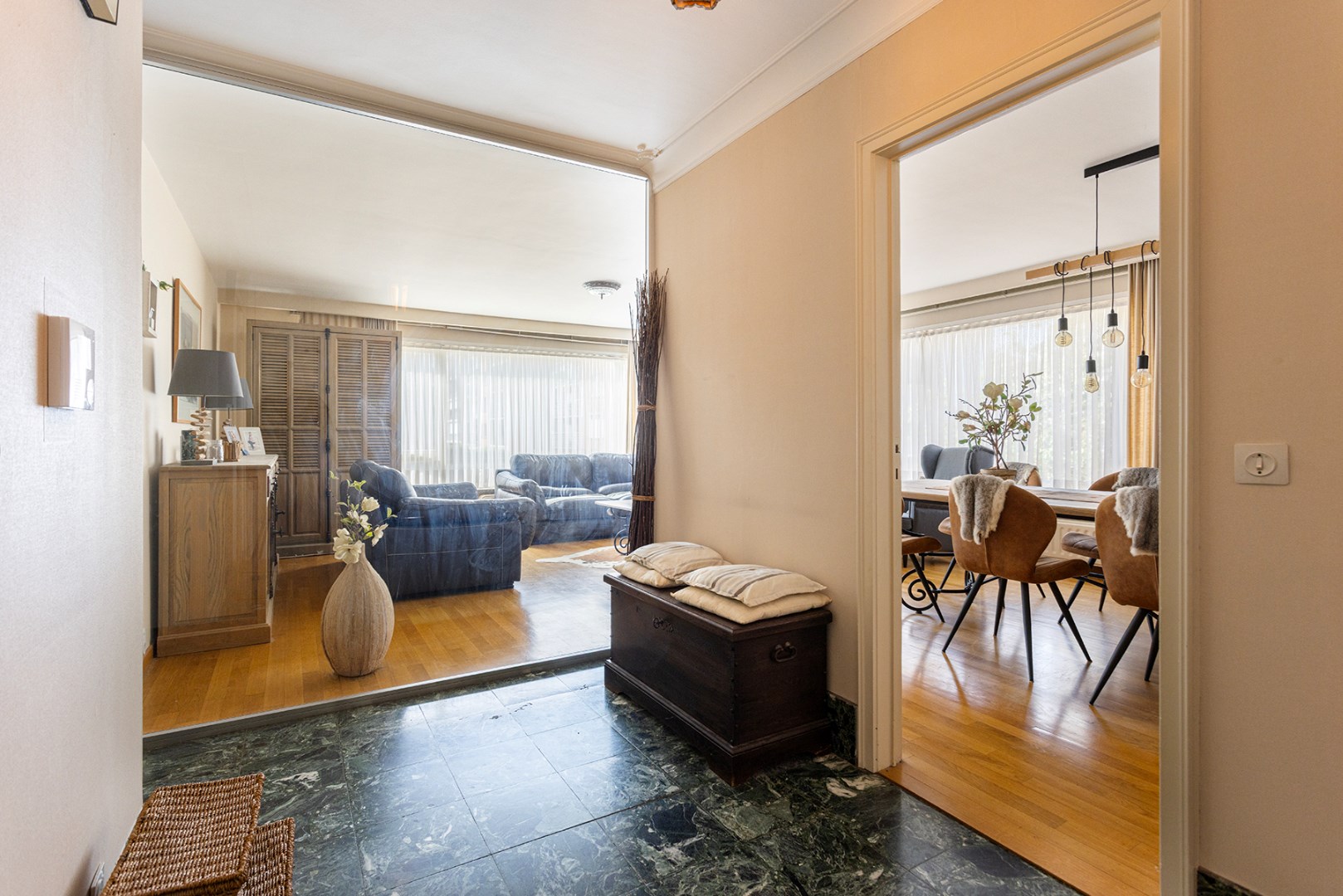 U komt binnen in een centraal gelegen inkomhal (12m²) met vestiaire die doorgang geeft aan alle ruimtes. Links van de inkomhal vindt u een ruime en lichte woonkamer (40m²) deze geeft toegang tot de keuken (11m²). Aan de rechterzijde situeren zich drie volwaardige slaapkamers (19m², 15m² en 10m²), waarvan één slaapkamer doorgang geeft aan een groot terras. Centraal in het appartement liggen de badkamer met ligbad (5m²) en een apart toilet.
