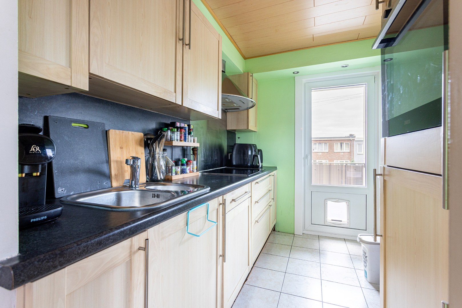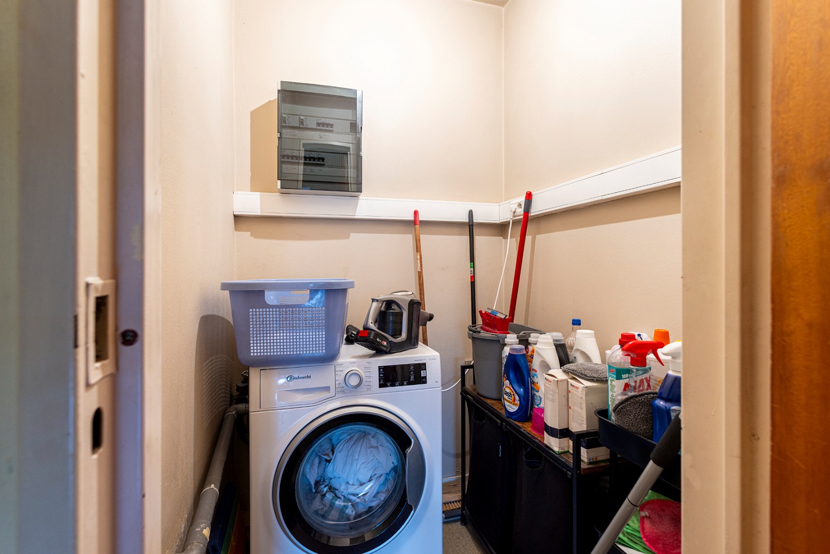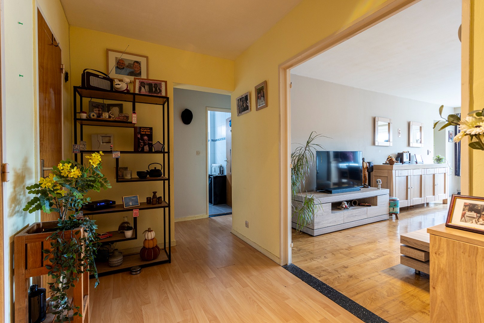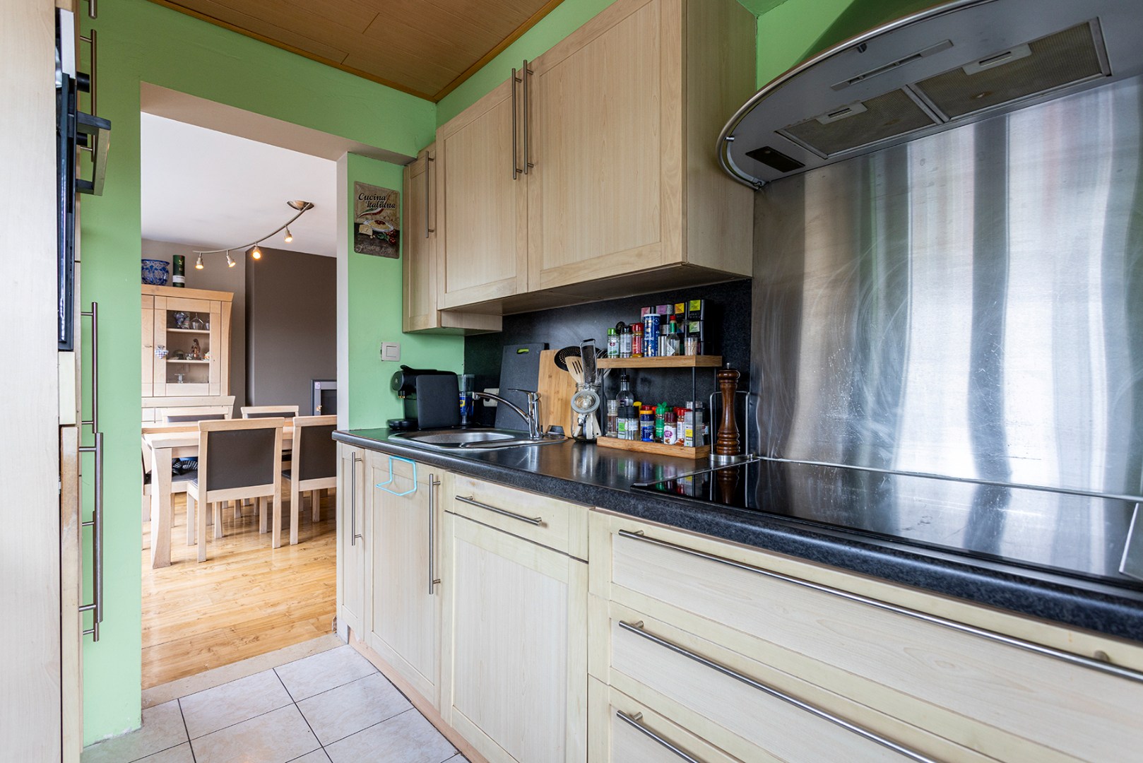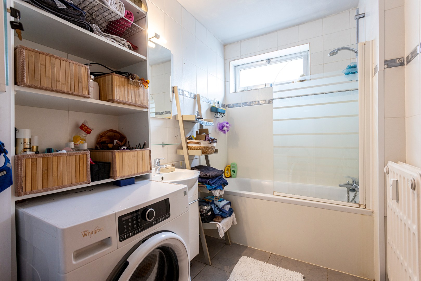 U betreedt het eigendom via een centraal gelegen inkomhal met vestiaireruimte, die doorgang geeft aan een apart toilet, een wasplaats, twee ruime slaapkamers van 16m² en 10m², de badkamer met ligbad en tot slot de lichtrijke woonkamer van 31m². Deze laatste geeft doorgang aan de keuken, waarlangs u een fijn terras vindt.