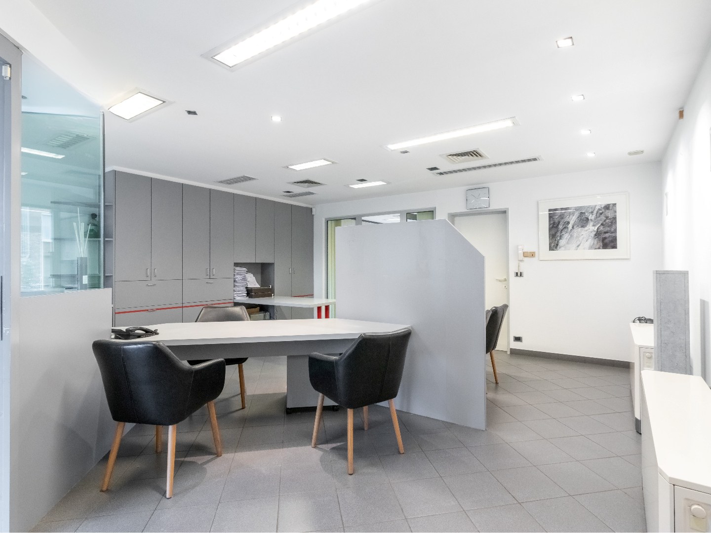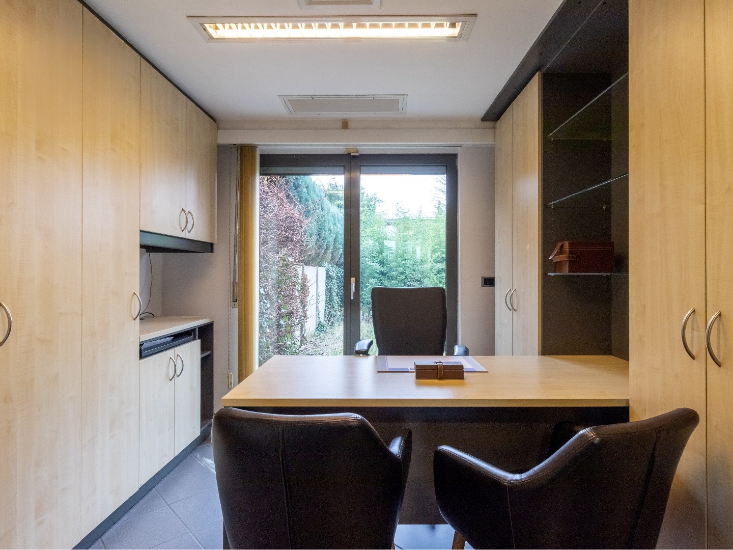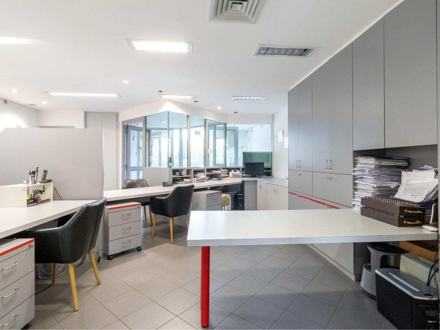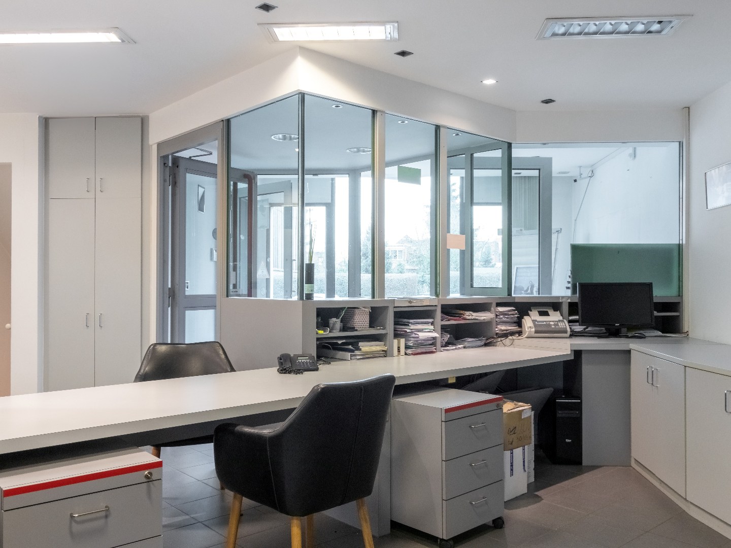 Het gelijkvloers is momenteel ingericht als kantoor en heeft jaren dienst gedaan als verzekeringskantoor en bank.