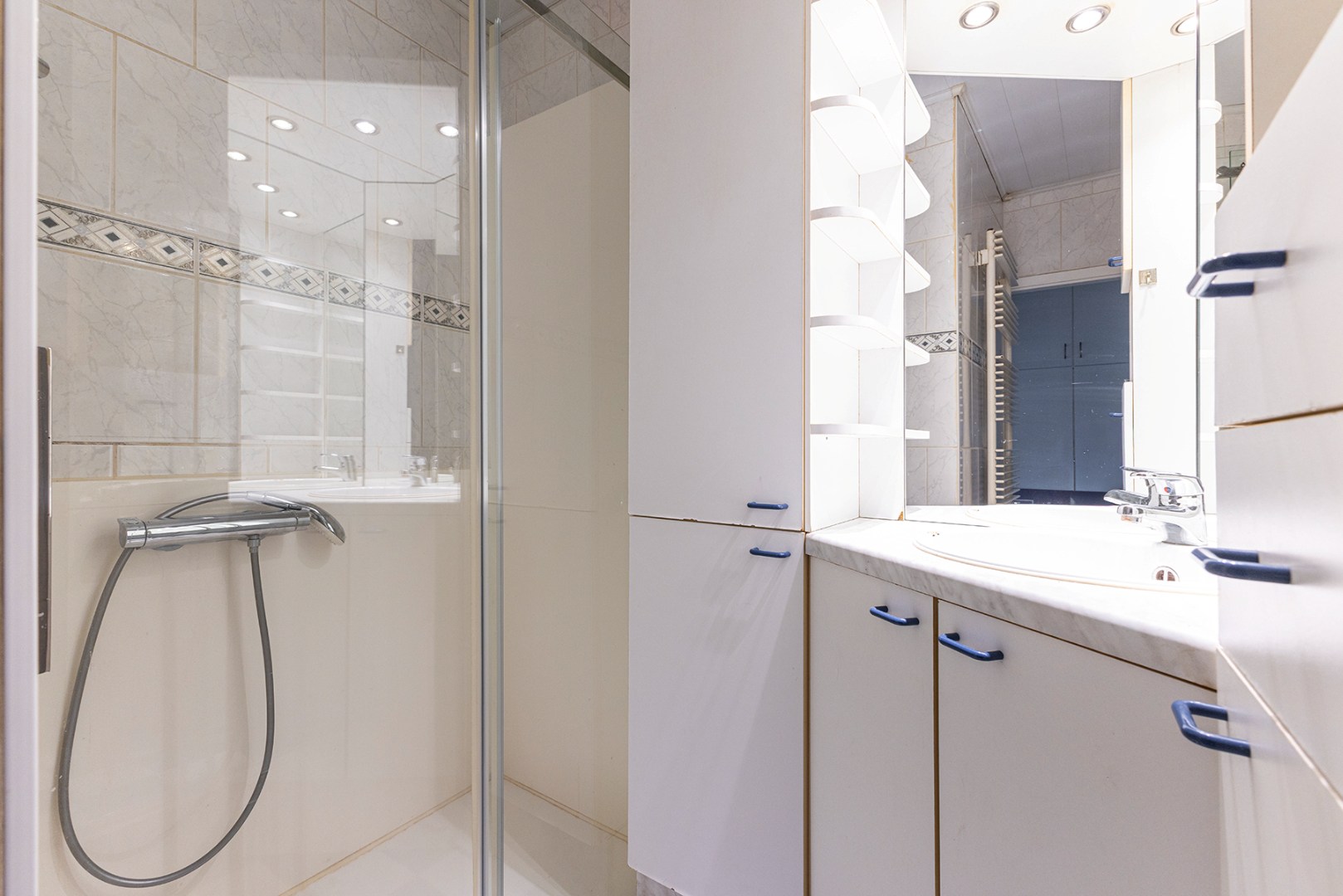 U betreedt het appartement via de centrale inkomhal met vestiaireruimte. Hier bevinden zich eveneens de toegang tot het aparte toilet en de badkamer met douche.