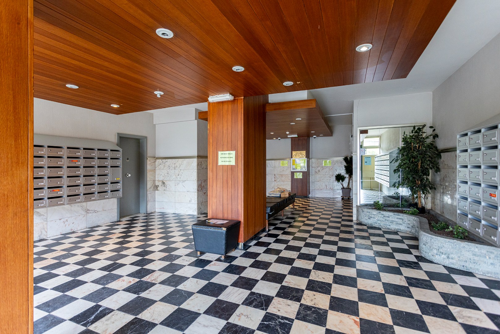 Bij binnenkomst in de inkomhal ervaart u meteen het comfort: een ingebouwde vestiairekast met automatische verlichting. Links vindt u de badkamer met douche, meubel met enkele spoelbak en aansluitingen voor wasmachine en droogkast. Rechts situeert zich de volledig op maat gemaakte keuken met lichtsensor voor de sfeerverlichting. Deze is uitgerust met inductiekookplaat, dampkap, koelkast, diepvries, combi-oven en vaatwasser. Rechtdoor vanuit de inkomhal komt u in de ruime woonkamer met prachtig groen uitzicht. Aansluitend bevindt zich de slaapkamer met toegang tot het terras. Naast de woonkamer ligt een bureel, dat mits kleine aanpassing als tweede slaapkamer kan dienen. De woonkamer, slaapkamer en bureel zijn afgewerkt met een stijlvolle parketvloer.