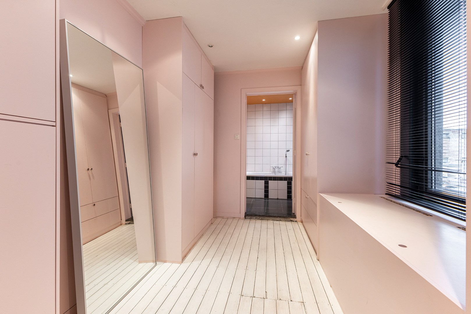 Hier is er een doorloopkamer (12m²) met ingebouwde kasten die momenteel ingericht is als dressing. Aanpalend is er de eerste badkamer (9,5m²) met toilet, bad en lavabo. Verder zijn er twee slaapkamers van 19m² en 12,5m².
