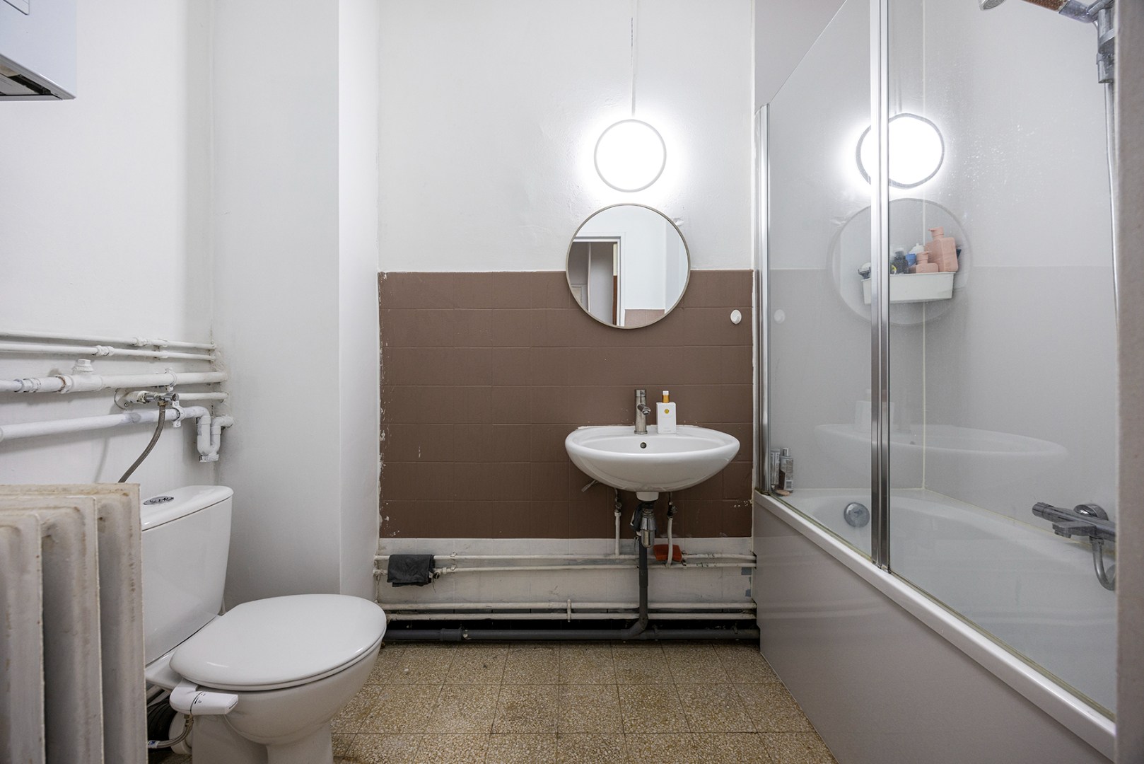 Centraal is er een aparte berging en de badkamer met ligbad, toilet en enkel lavabomeubel.