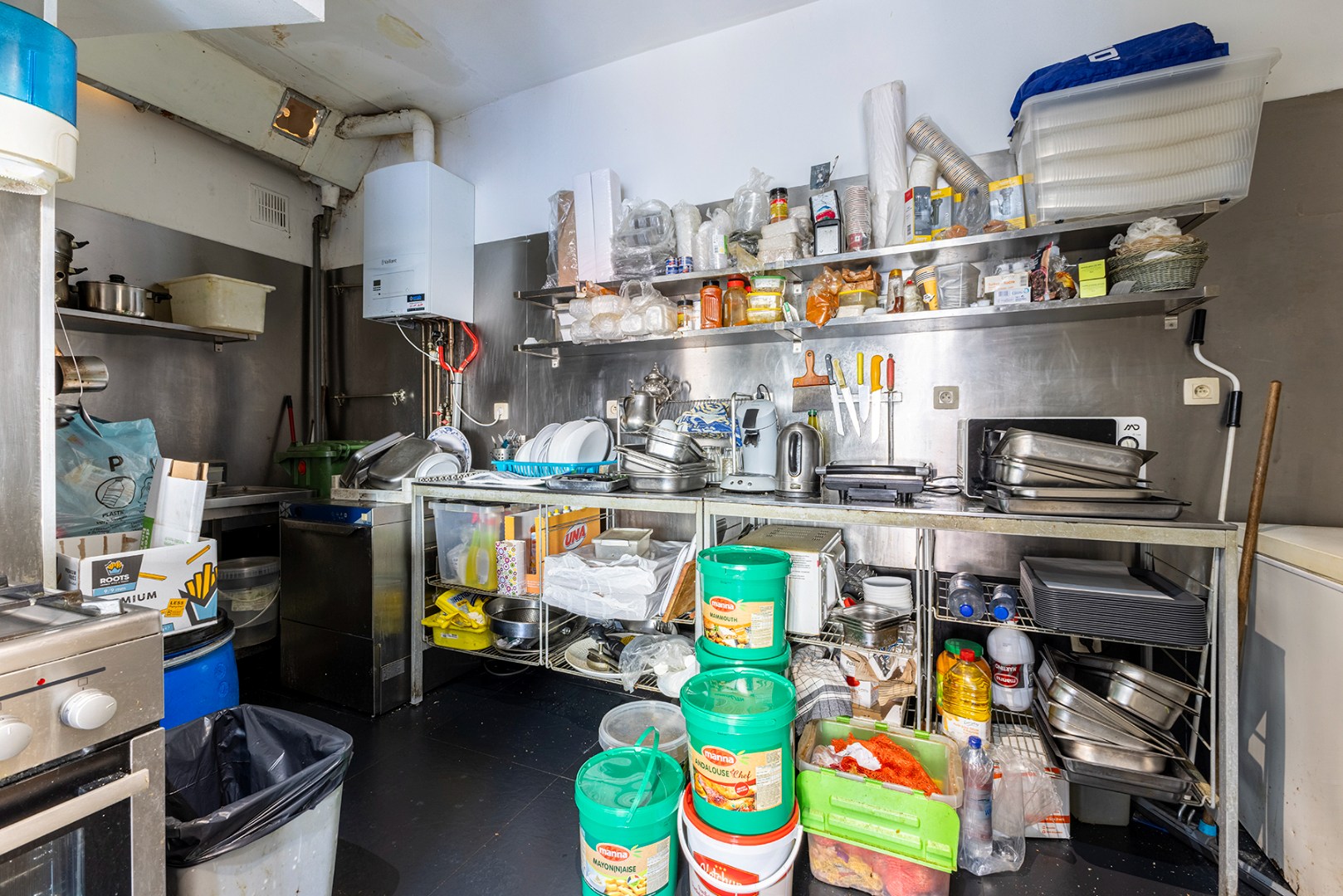 Op het gelijkvloers situeert zich een handelspand met horeca-uitbating. Op de eerste en tweede verdieping vindt u telkens een appartement bestaande uit een woonkamer, keuken, badkamer en twee slaapkamers.