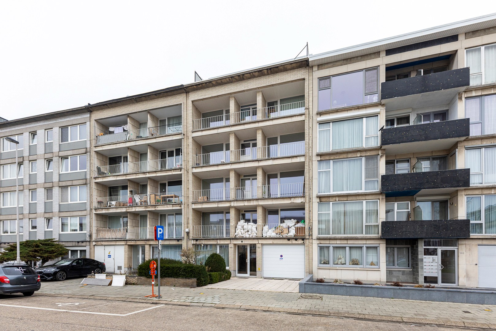 U betreedt het appartement via de centrale inkomhal die vooraan toegang geeft tot de lichtrijke en gezellige woonkamer met ruim overdekt balkon en open keuken.