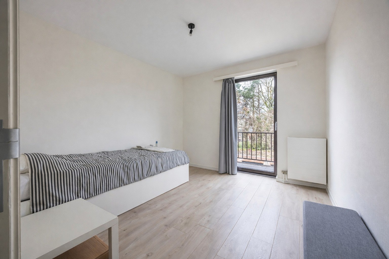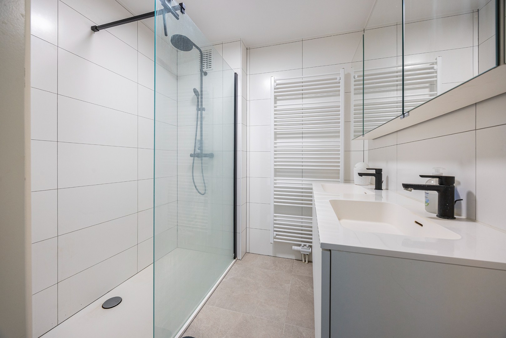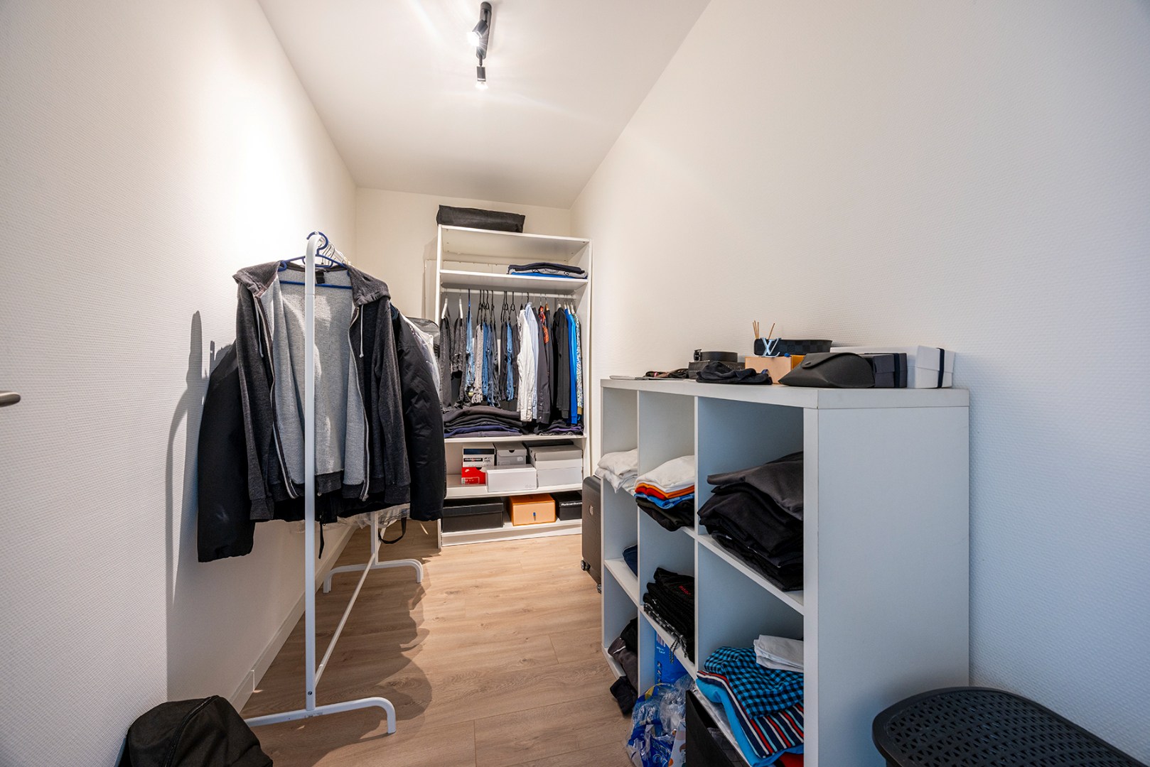 Via de inkomhal kan u de meeste ruimtes betreden met vooraan de lichtrijke woonkamer met het eerste terras. Aanpalend is er de ingerichte gesloten keuken met berging. Centraal is er de moderne badkamer met inloopdouche, handdoekradiator en dubbele lavabo verwerkt in een badkamermeubel en er is een apart toilet. Verder zijn er twee slaapkamers waarvan één slaapkamer toegang geeft aan het terras achteraan. Er is ook nog een grote berging/dressing/bureau aanwezig.