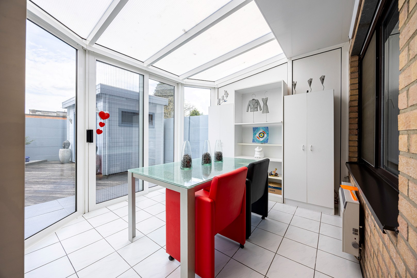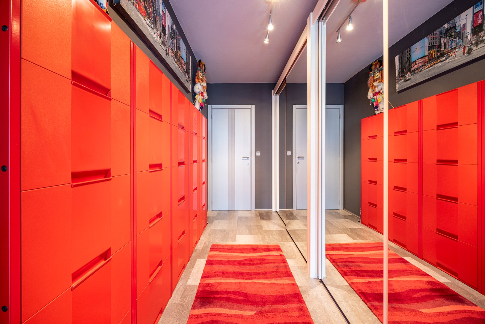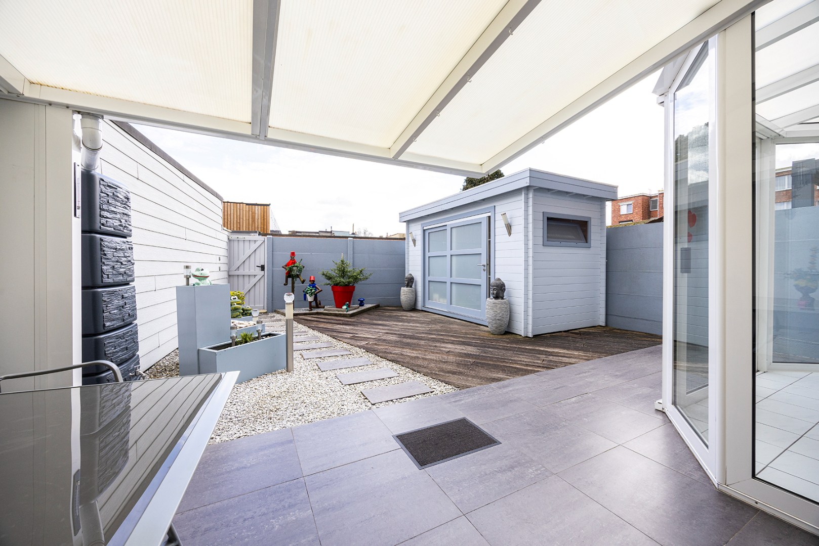 U betreedt het appartement via een ruime inkomhal met vestiairekast. Deze is centraal gelegen en geeft doorgang aan de woonkamer, een moderne badkamer met inloopdouche, dubbele spoelbak verwerkt in meubel en een apart toilet. Langs de grote woonkamer (35m²) vindt u de hypermoderne, open keuken (12m²). Deze laatste is voorzien van een inductiekookplaat, een dampkap van Novy, een oven en microgolfoven, koelkast en diepvries, vaatwasser en een enkele spoelbak, alsook de aansluiting voor de wasmachine. Aan de achterzijde van het appartement situeren zich drie slaapkamers (19m², 11m² en 8m²), waarvan de middelste doorgang geeft aan de veranda (23m²). Vervolgens betreedt u een Oostgerichte tuin (47m²). Hierlangs kan u de achterliggende garage terugvinden. De slaapkamers zijn voorzien van ingemaakte kasten.