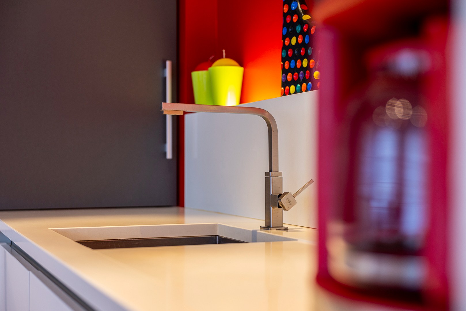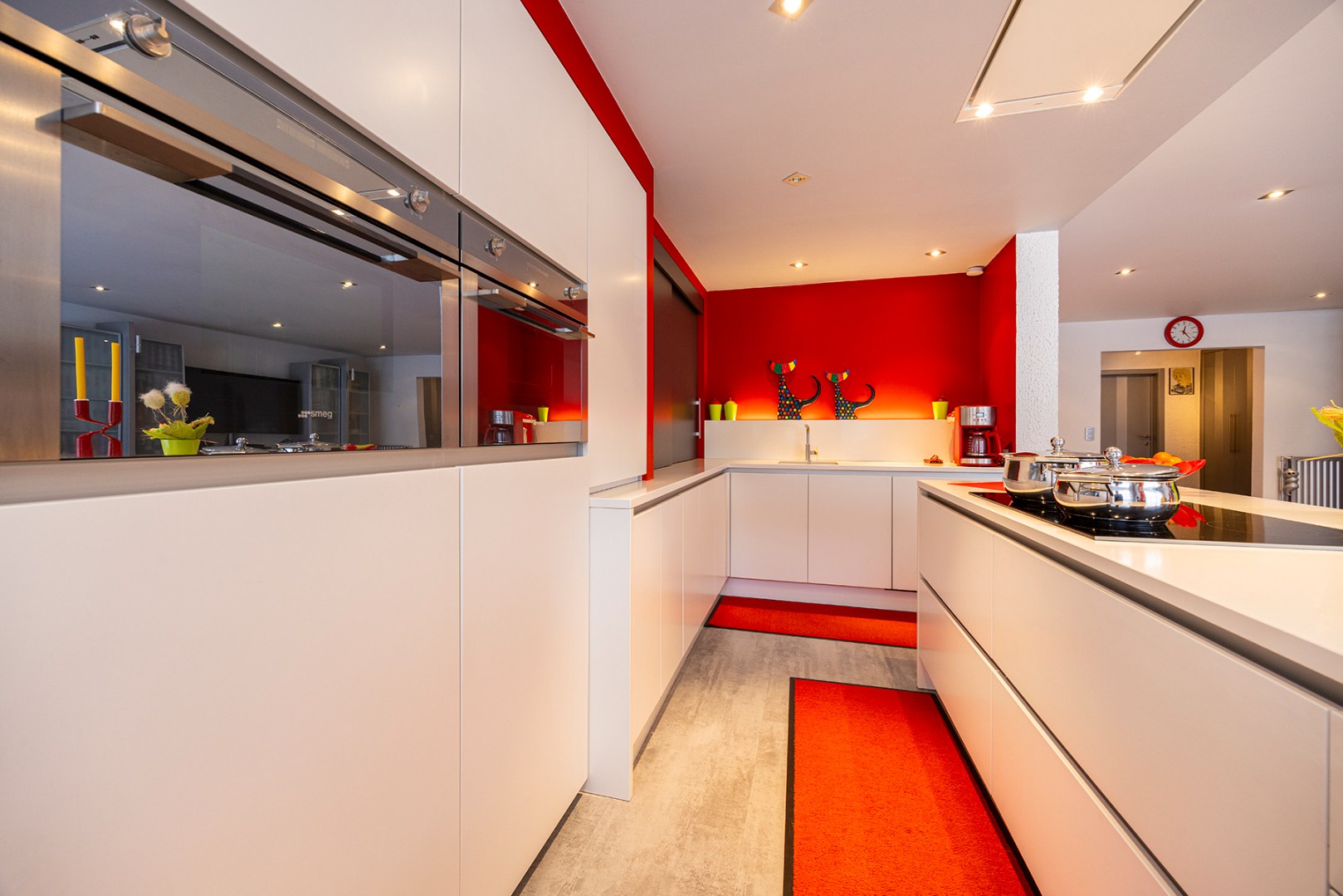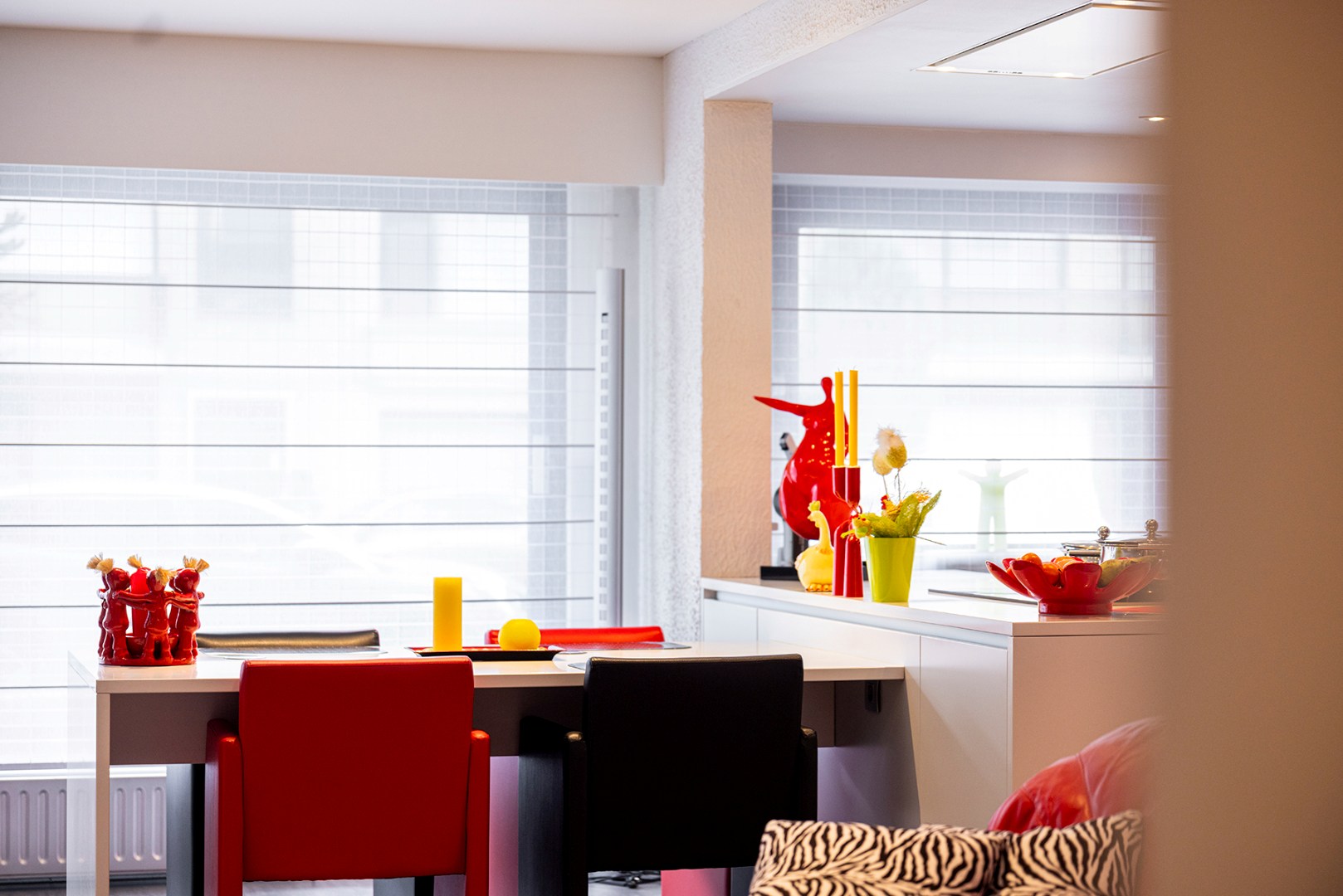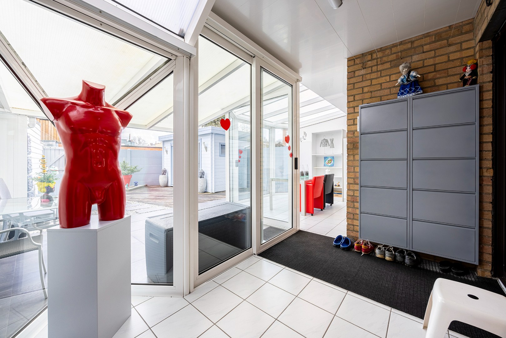 U betreedt het appartement via een ruime inkomhal met vestiairekast. Deze is centraal gelegen en geeft doorgang aan de woonkamer, een moderne badkamer met inloopdouche, dubbele spoelbak verwerkt in meubel en een apart toilet. Langs de grote woonkamer (35m²) vindt u de hypermoderne, open keuken (12m²). Deze laatste is voorzien van een inductiekookplaat, een dampkap van Novy, een oven en microgolfoven, koelkast en diepvries, vaatwasser en een enkele spoelbak, alsook de aansluiting voor de wasmachine. Aan de achterzijde van het appartement situeren zich drie slaapkamers (19m², 11m² en 8m²), waarvan de middelste doorgang geeft aan de veranda (23m²). Vervolgens betreedt u een Oostgerichte tuin (47m²). Hierlangs kan u de achterliggende garage terugvinden. De slaapkamers zijn voorzien van ingemaakte kasten.
