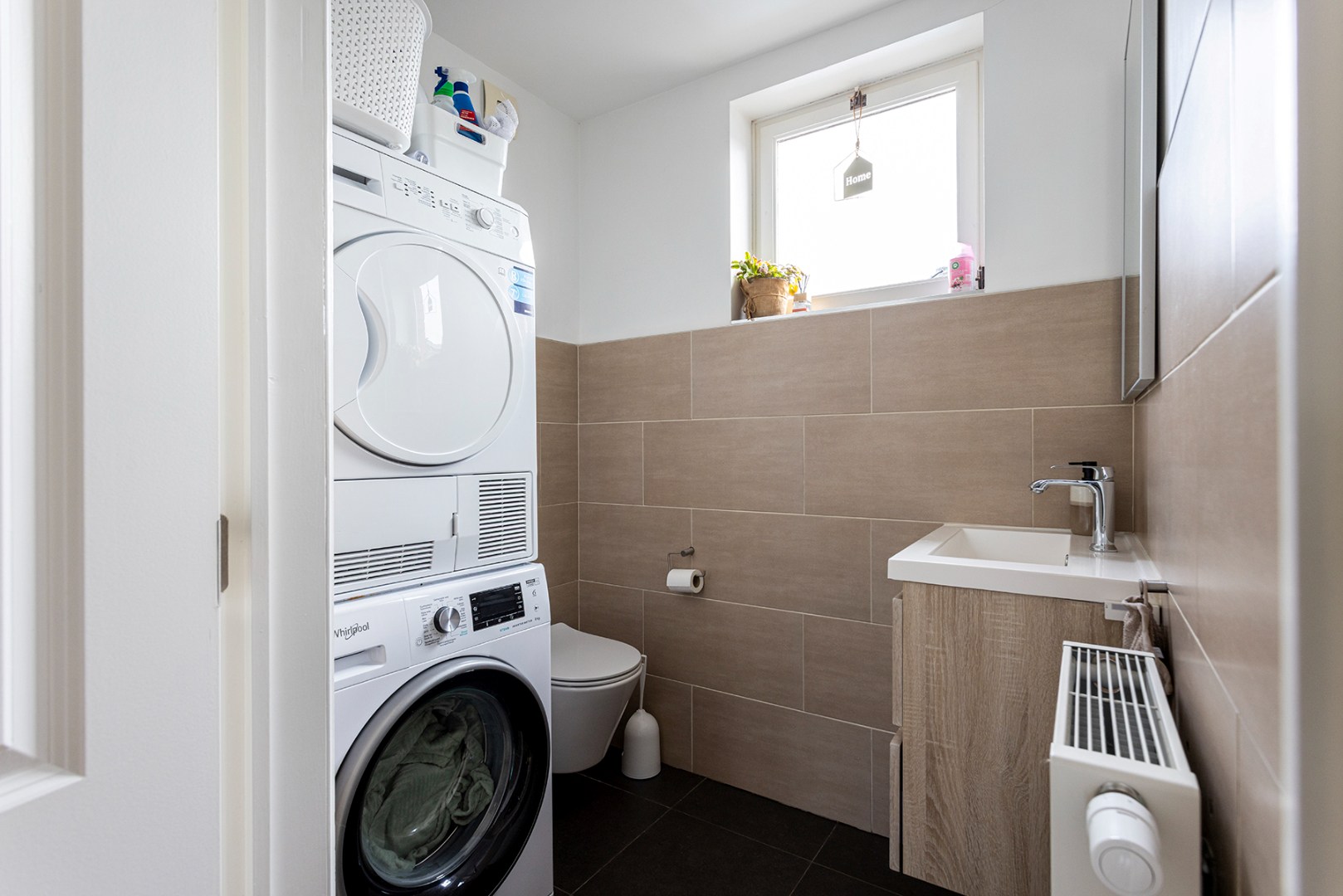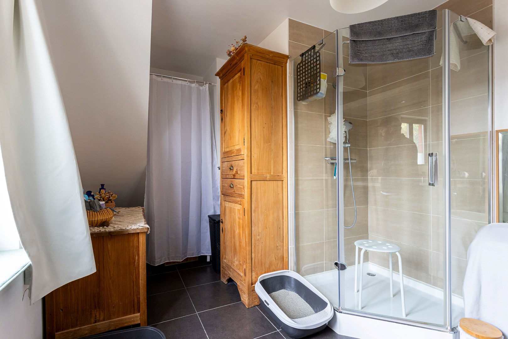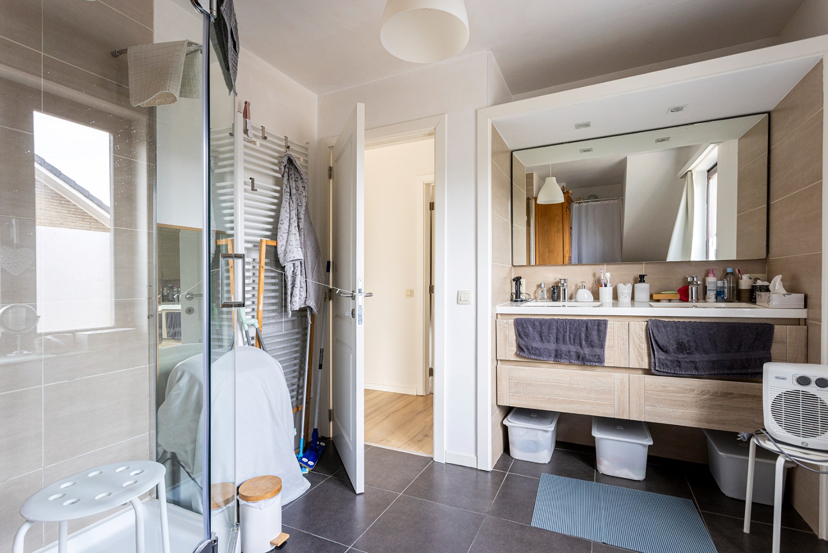 Centraal in het appartement vindt u de moderne badkamer met douche, dubbele lavabo met bijhorend meubel. Het gastentoilet is apart en daar is ook plaats voor wasmachine en droogkast.