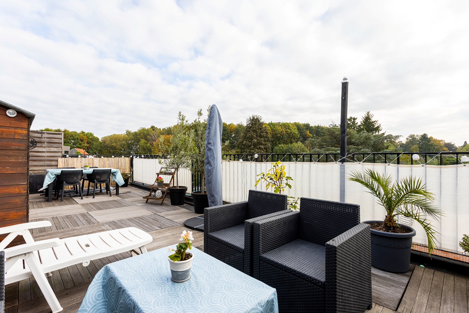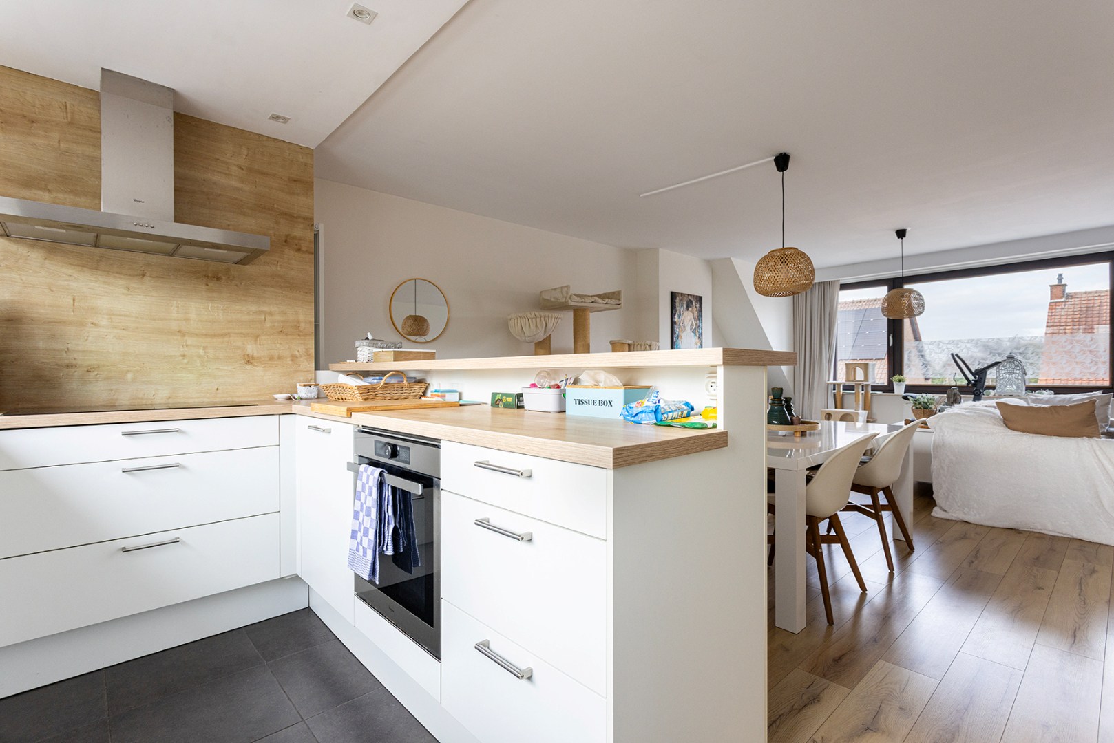 U betreedt het appartement via de inkomhal.Deze geeft doorgang aan alle ruimtes. Via de inkomhal heb je ook toegang tot het ruime terras van 40m² dat zich over het hele gebouw uitstrekt. De sfeervolle woonkamer biedt voldoende plaats voor zowel een gezellige zithoek als een volwaardige eettafel. Ook tref je hier de open keuken aan met zicht op de velden achteraan. Deze is voorzien van alle toestellen voor dagelijks comfort.